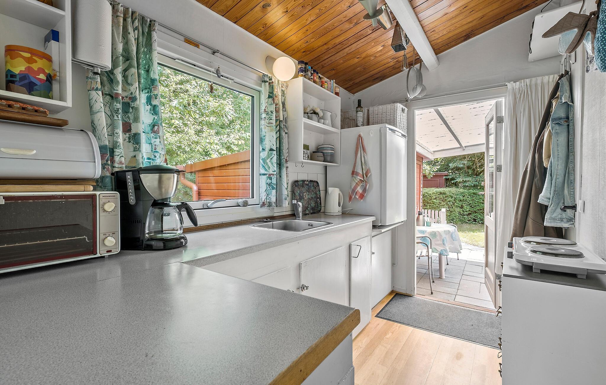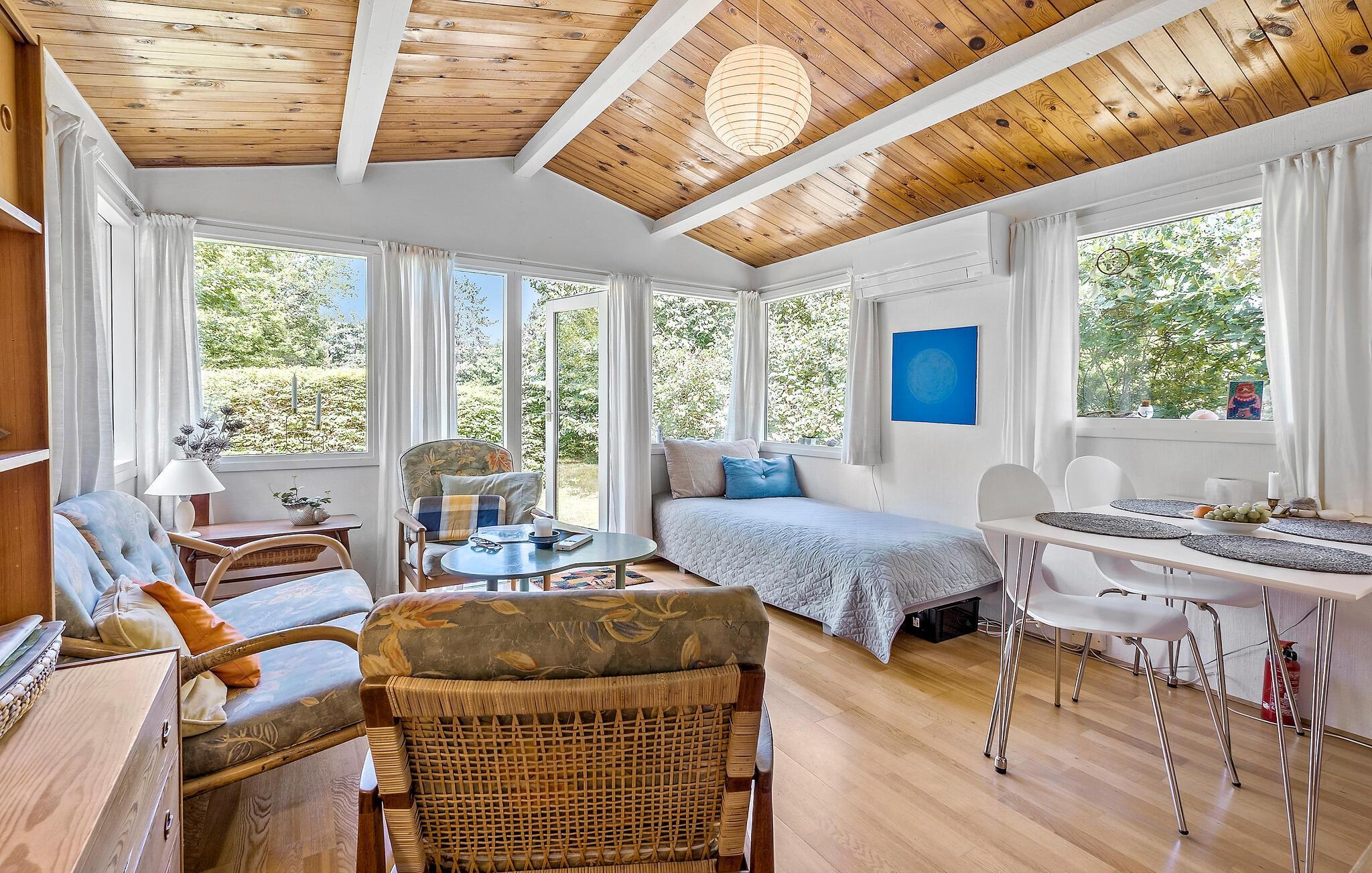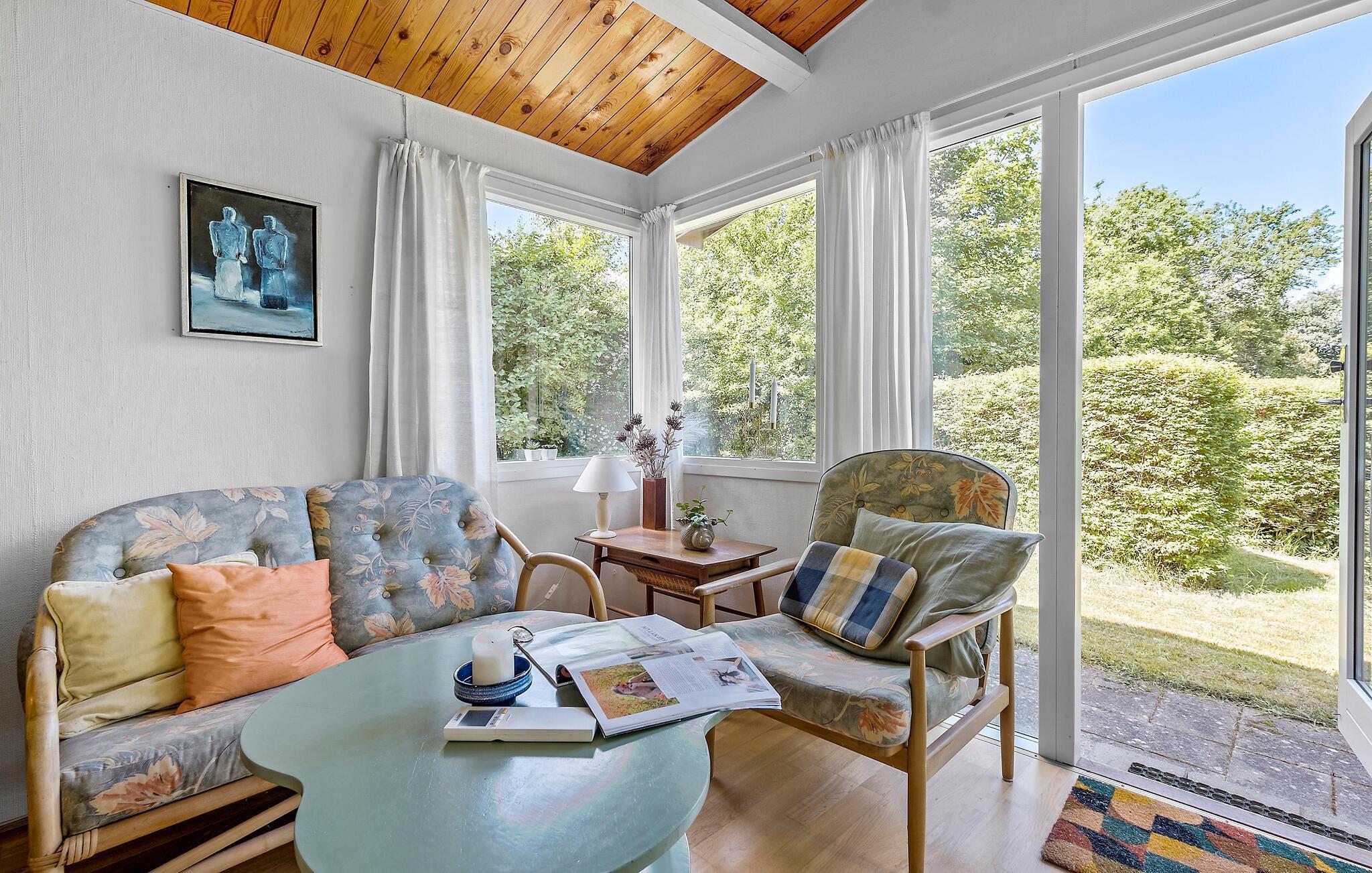 Velkommen til Klint Strand og jeres charmerende, kompakte sommerhus i idylliske og naturnære omgivelser. Nyd roen og den afsides beliggenhed i dette hyggelige hus, omgivet af frodig natur. Husets indre udstråler varme og komfort, med et lyst opholdsområde, der er ideelt til afslapning og til at fordybe sig i en god bog. Hyg jer i de komfortable lænestole og sofaer, og nyd udsigten til haven gennem de store vinduer. Start jeres feriedage med morgenmad på den solrige terrasse, hvor I kan nyde den friske luft og naturen.