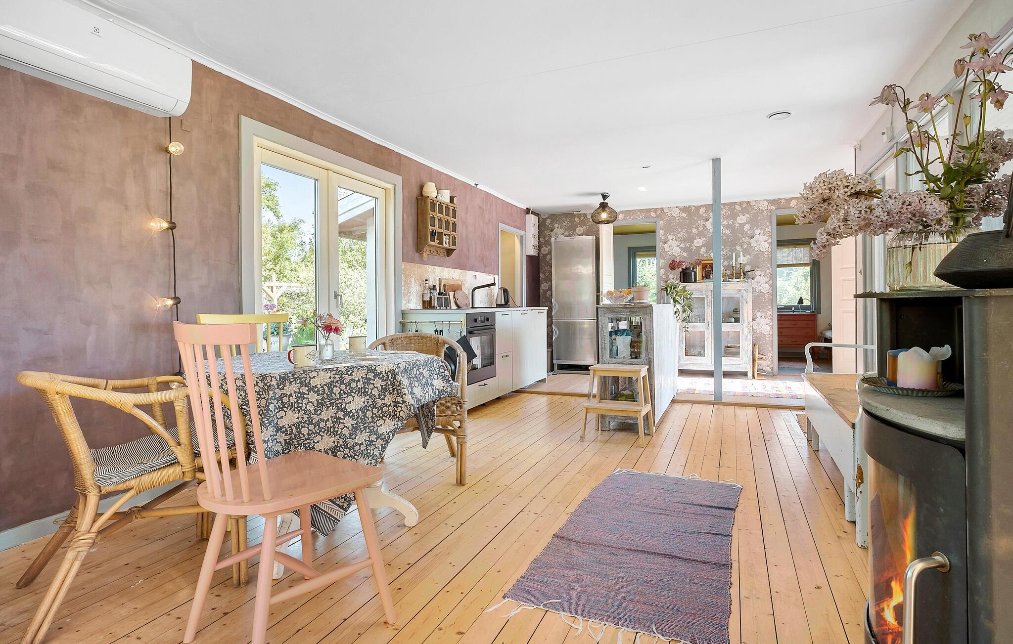 Tag familien under armen og rejs til det nordvestligste Sjælland, hvor I tæt på Nykøbing og Klintehuse finder denne lille perle af et feriehus. Omgivelserne er grønne og fredelige, og indvendigt emmer det af hygge med masser af dagslys gennem de mange vinduespartier. Huset er nydeligt indrettet med åbent boligkoncept, velholdte trægulve og en brændeovn, der giver varme og lidt ekstra hygge, hvis vejret skulle vise tænder. Tilbered nogle lækre retter i det veludstyrede køkken og nyd måltiderne ved spisebordet eller på den overdækkede terrasse, inden I runder af med brætspil eller en god film i stuen.