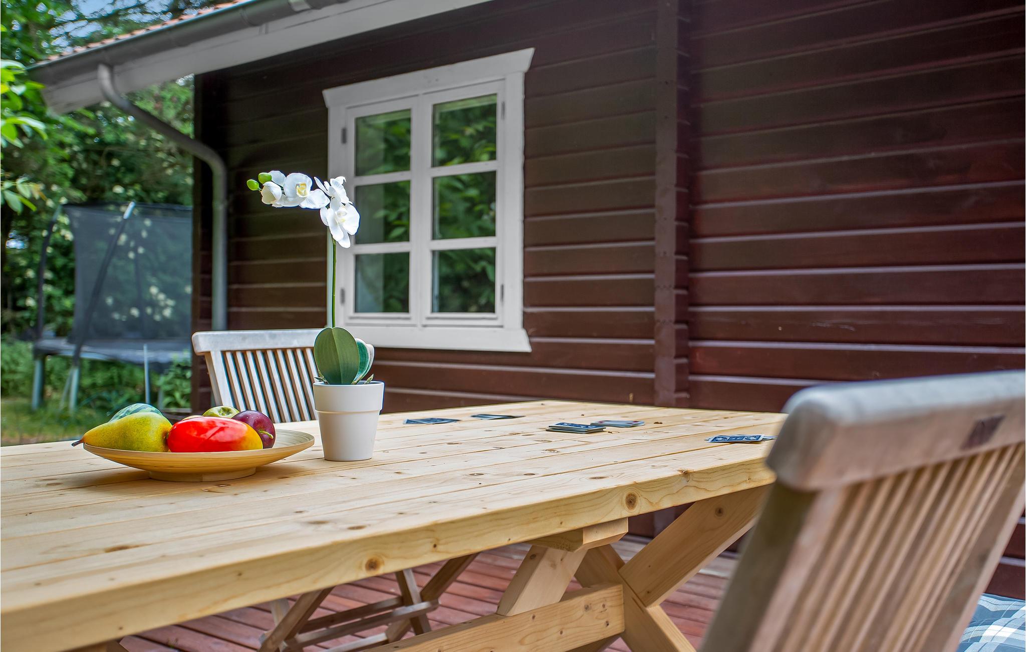 Børnene kan lege uforstyrret på den store naturgrund og bruge trampolinen, fodboldmålene og vikingespillet. Den åbne terrasse med havemøbler og grill er en fantastisk måde at tilbringe tid udendørs og slukke for hverdagen.