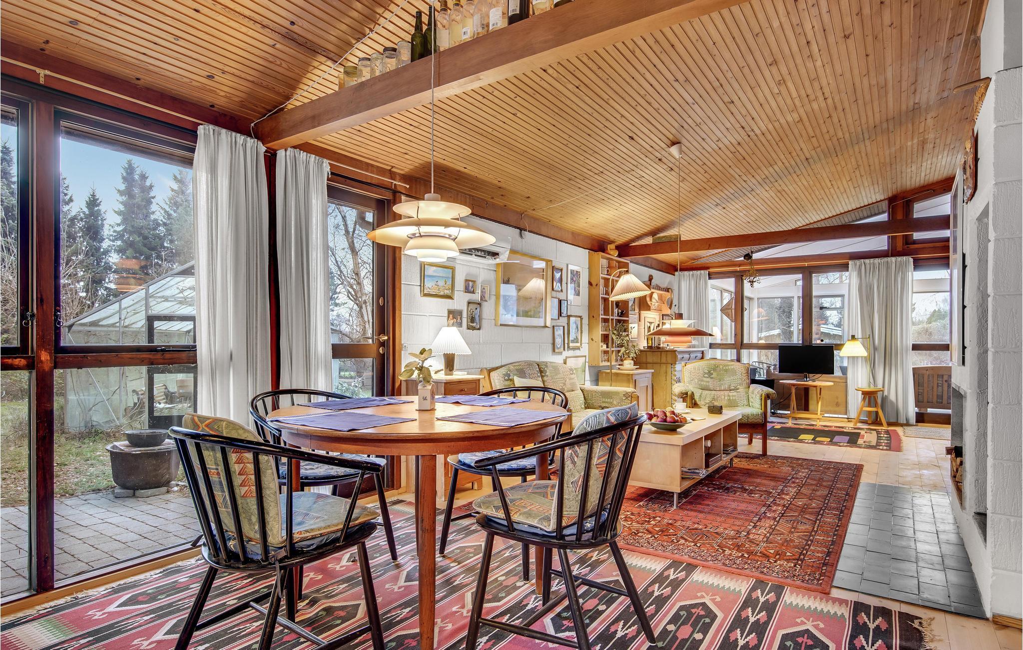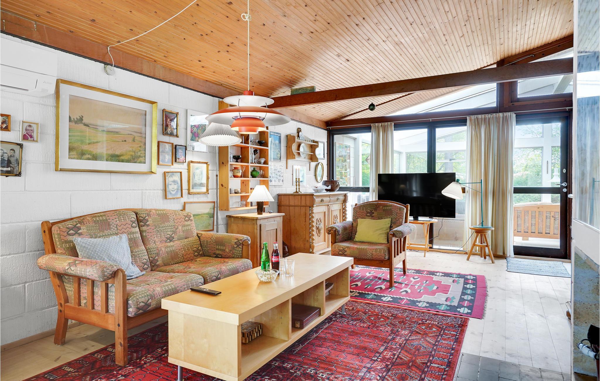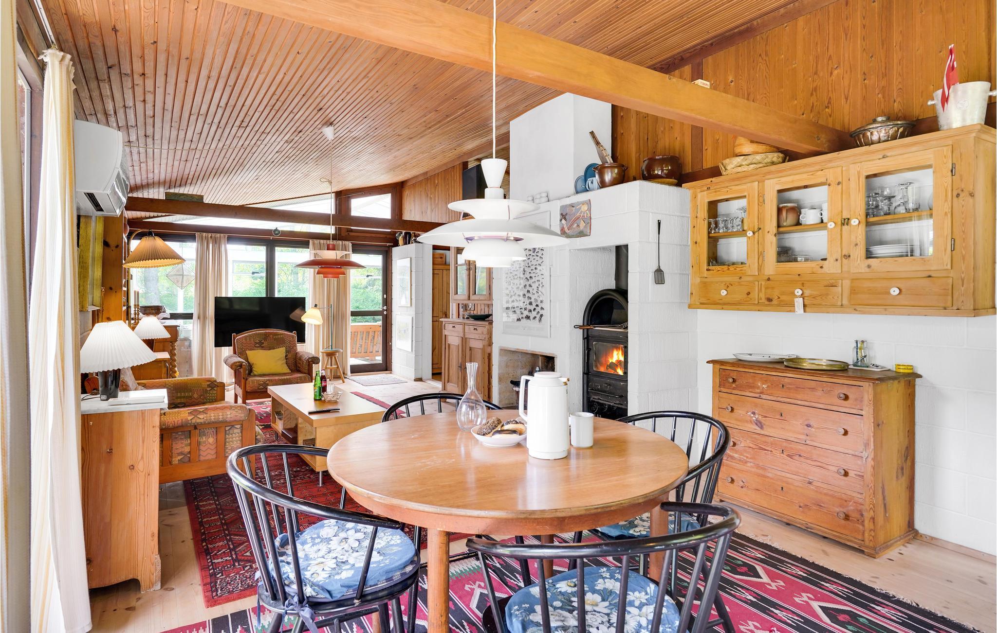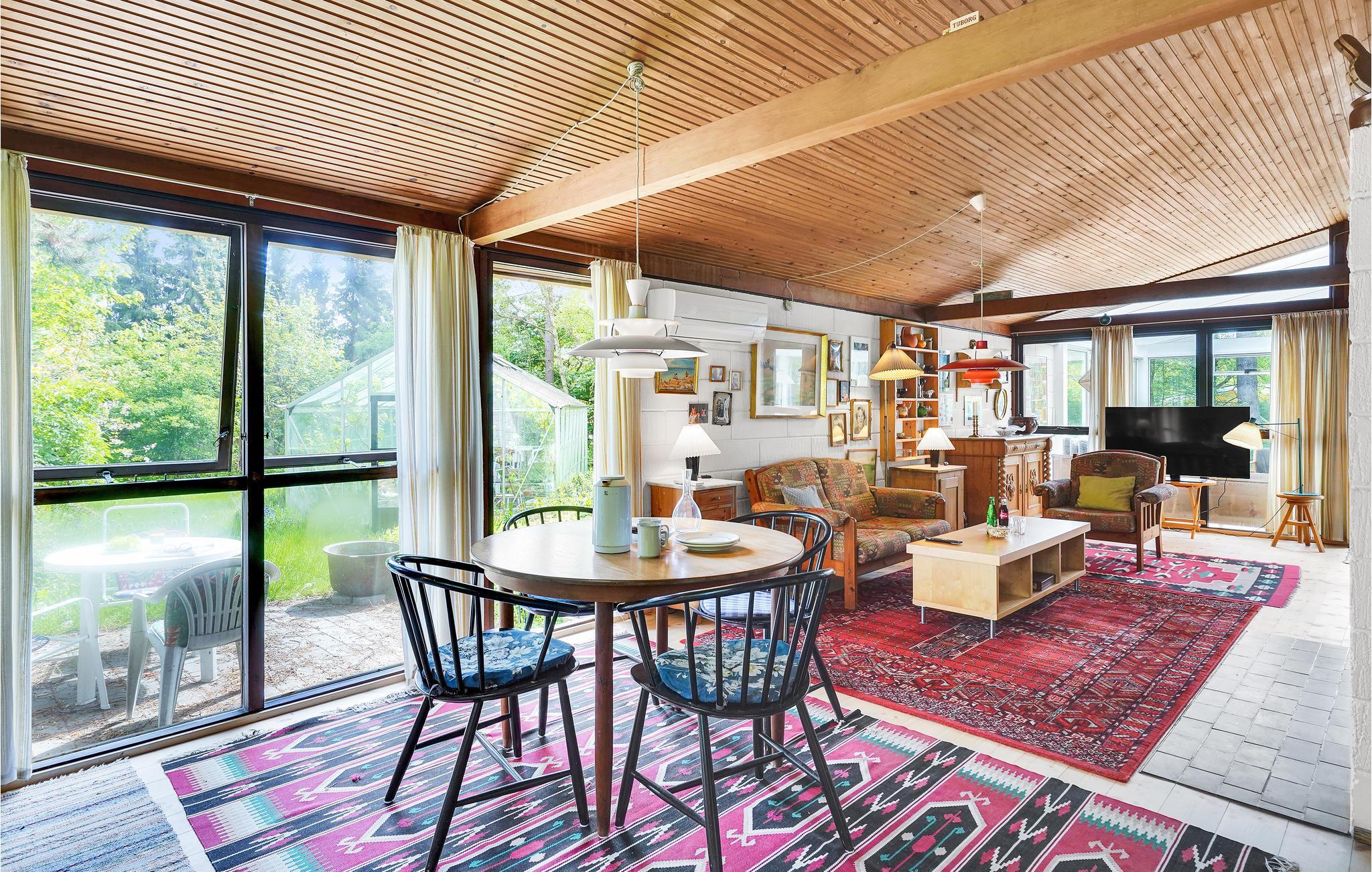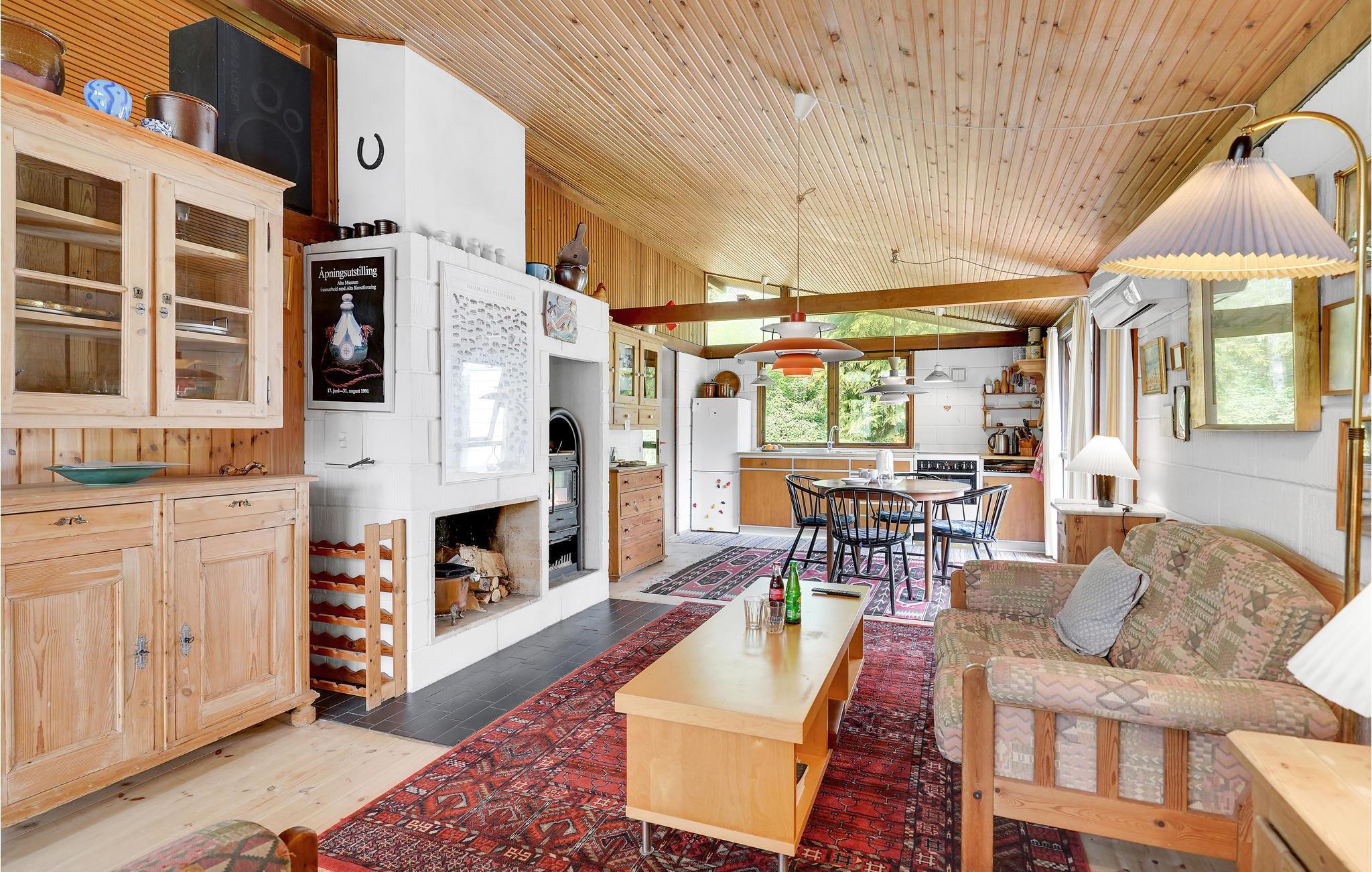 Velkommen til dette hyggelige, rummelige og smagfuldt indrettede feriehus, der takket være helårsisolation og brændeovn skaber perfekte rammer om et afslappende ophold i alle årstider. Her kan I virkelig gå ned i gear og glemme alt om hverdagen. Om sommeren kommer I til at tilbringe en stor del af ferien på husets åbne terrasse, hvor I kan spise jeres feriemåltider og nyde solen, mens børnene løber rundt og leger omkring huset. Om aftenen kan I tænde op i grillen og holde en hyggelig grillaften, og når det begynder at blive køligt at sidde ude, kan I trække ind i havestuen (bemærk dog, at havestuen ikke er opvarmet).