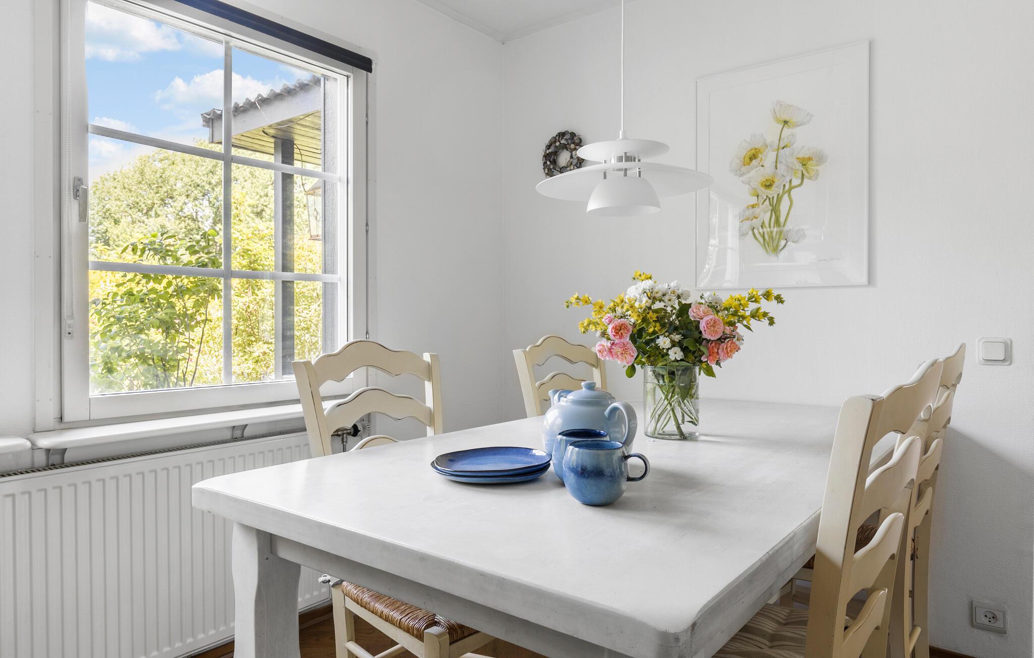 Velkommen til de landlige rammer, som omgiver dette skønne sommerhus. Her er der lagt op til et dejligt ophold i Nordsjælland. Huset emmer af feriestemning, lige fra de pragtfulde verandaer til husets elegante lyse rum indendørs. Træd ind i den hyggelige opholdsstue, hvor I kan læne jer tilbage i de komfortable sofaer. Nyd den behagelige varme fra brændeovnen, som bidrager med ekstra atmosfære på de kølige aftener. Begynd dagene med morgenmad i det store, åbne spisekøkken, hvor I kan kigge ud på de grønne rammer imens.