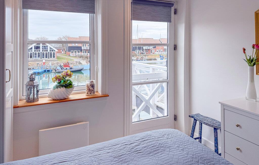 Opholdsstuen i denne lejlighed ved havnen er indbydende og møbleret med komfortable sofaer og et fjernsyn. Slå jer ned ved træbordet og begynd dagene med morgenmad i roligt tempo. Den åbne stue og spisestue har en behagelig atmosfære. Tilbered jeres måltider i det praktiske køkken med træbordplade og træk jer tilbage til et af de hyggelige soveværelser om aftenen, hvor I også kan nyde udsigten over havnen.