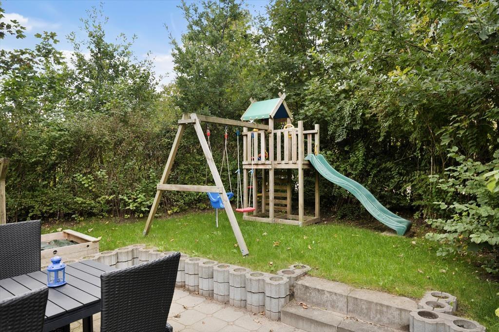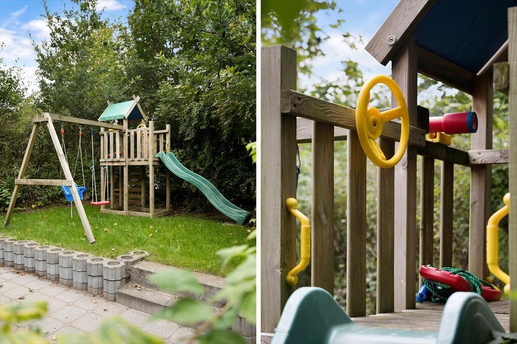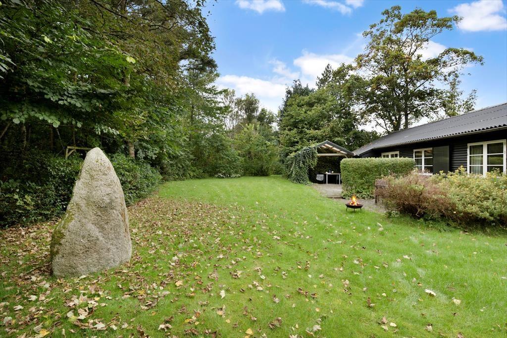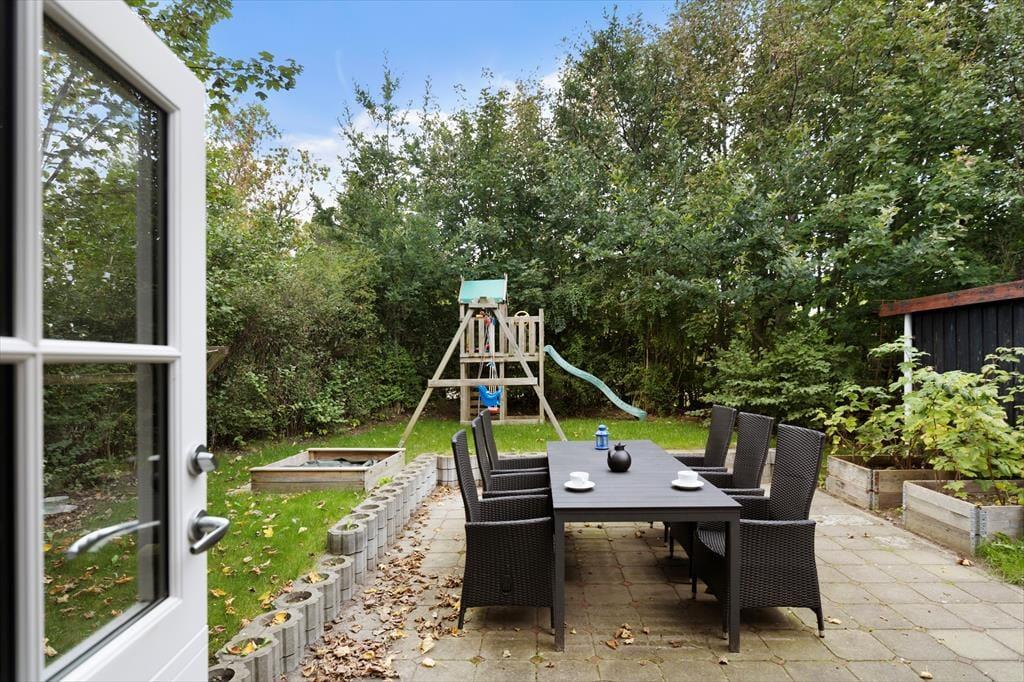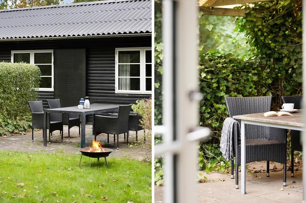 Ude i det fri venter en dejlig og ganske ugeneret naturgrund, der giver dig og dit selskab rig mulighed for at slappe af, læne sig tilbage og bare nyde roen med en kop kaffe eller et glas vin i hånden. Der er flere gode terrasser at vælge imellem, alt efter om det er morgenmaden, solskinsfrokosten eller grillmiddagen, I er kommet til i løbet af dagen – og hvis I trænger til at komme op af stolene efter et udsøgt måltid, er der masser af plads til at boltre sig i det grønne på den velanlagte græsplæne.