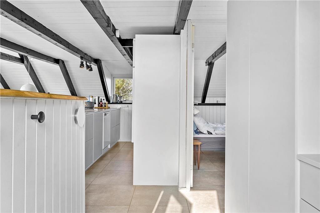 Sommerhuset på Mombak 7 emmer af hygge og charme fra det øjeblik, du træder indenfor. Den varme og indbydende atmosfære understreges af brændeovnens knitren, som skaber en helt særlig stemning på kølige aftener. Den smagfulde indretning gør, at huset føles som et hjem væk fra hjemmet, hvor du straks kan finde ro og nyde tiden med dine nærmeste. Med plads til fire personer er huset ideelt til en lille familie eller et par, der ønsker at trække stikket og finde tid til hinanden. Køkkenet og opholdsstuen smelter sammen i et åbent, lyst rum, der inviterer til fælles madlavning og hyggelige stunder.