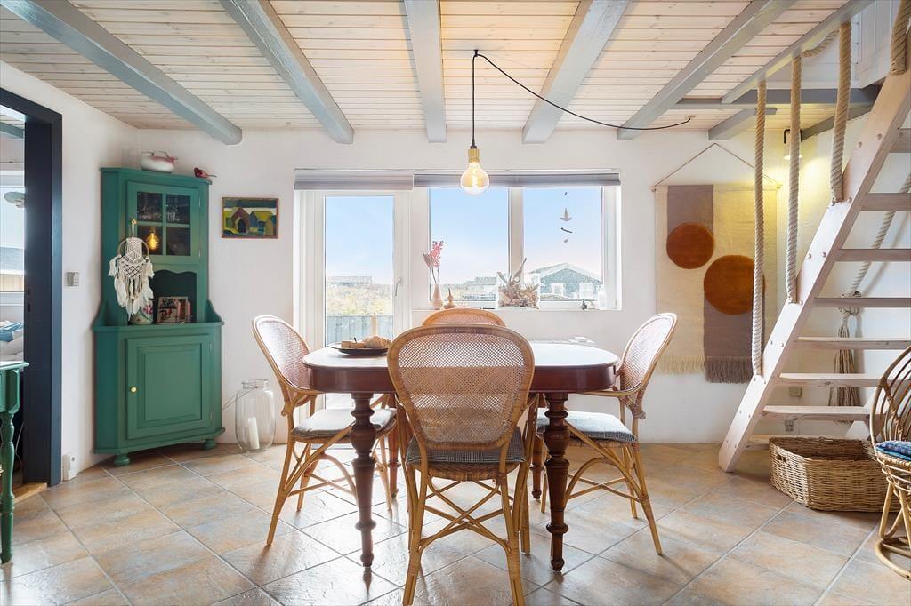Beliggende kun 200 meter fra Vesterhavet kan du nyde den betagende havudsigt fra første sal og vågne op til lyden af bølgerne. Ferielejligheden har en hyggelig terrasse, hvor du kan starte dagen med morgenkaffe eller slutte af med et glas vin, mens du ser solen gå ned.