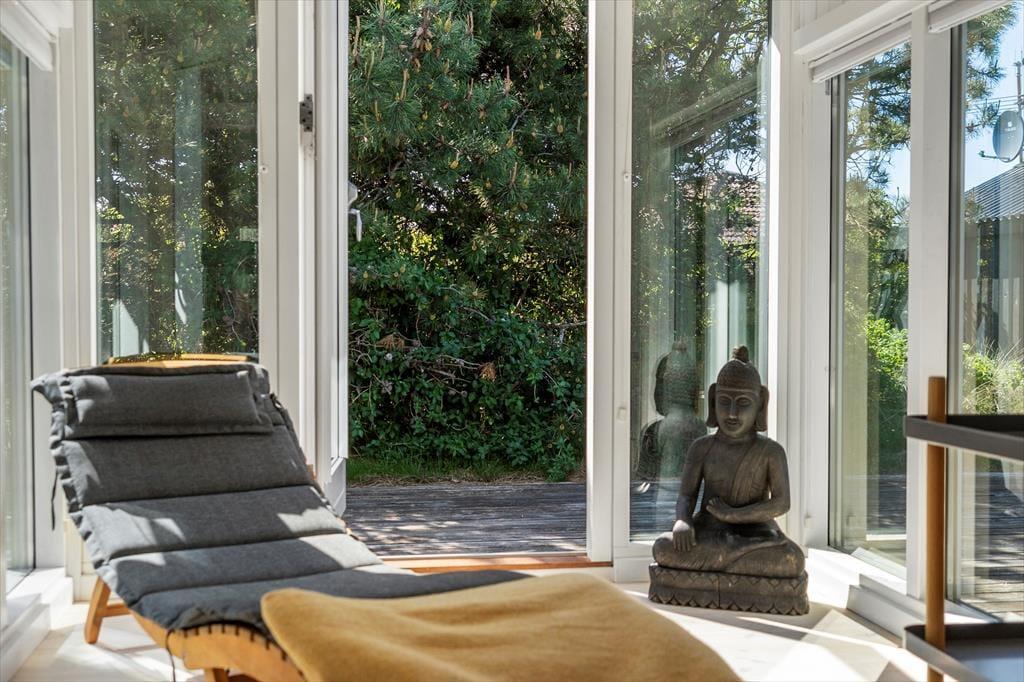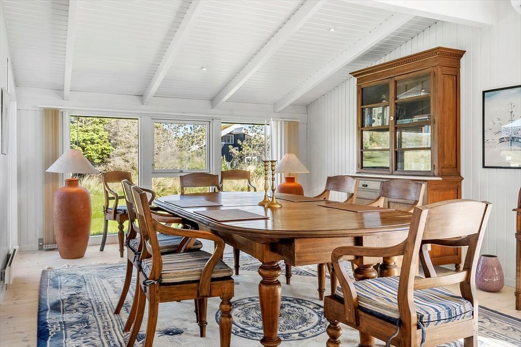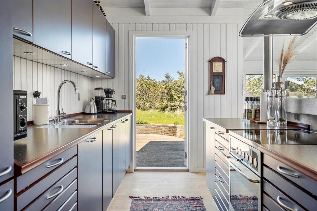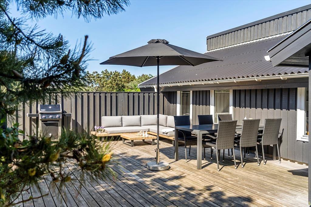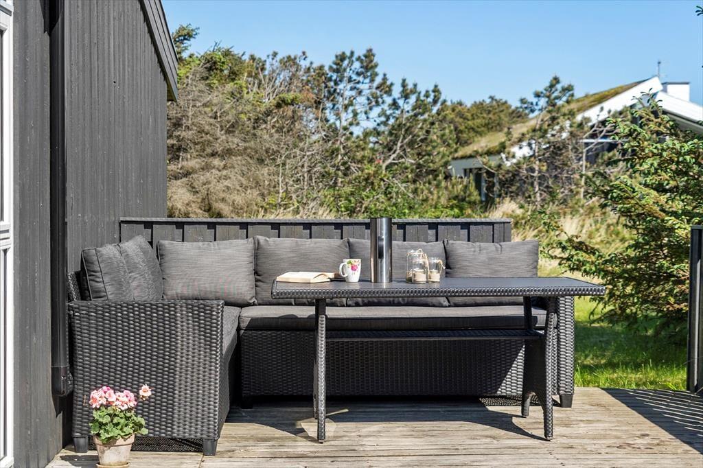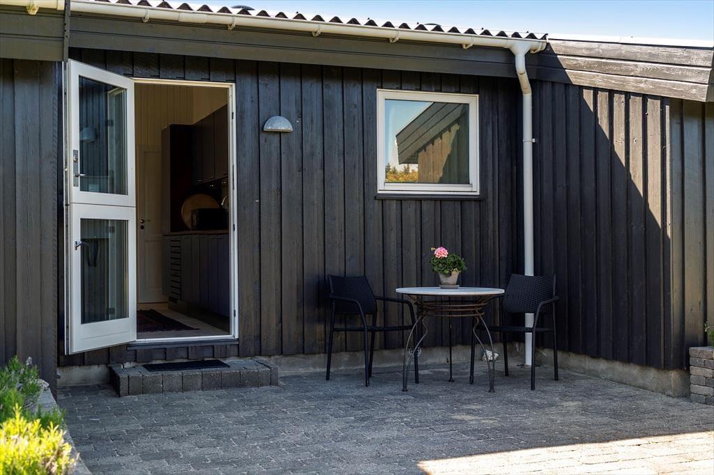 Udenfor åbenbarer sig et dejligt terrasseområde, hvor solen kan nydes fra morgen til aften. Terrassen er det oplagte sted at samles til grillhygge og lange, afslappede måltider i det fri, mens børnene leger på den omkringliggende grund. Beliggenheden i det populære Klitmøller betyder, at du har naturen lige ved hånden – og der er rig mulighed for at mærke klitlandskabet og den friske havluft tæt på. Huset ligger i et roligt område, hvor lyden af bølger og vindens hvisken danner den perfekte baggrundsmusik til din ferie.