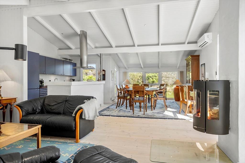 Træd indenfor i dette charmerende og velholdte sommerhus, der fra første øjeblik udstråler hjemlig hygge. Huset har plads til 6 personer og byder på en varm atmosfære, hvor de lyse rum indrammes af moderne komfort og en afslappet stil. Brændeovnen står som husets hjerte, klar til at sprede varme og hygge på kølige aftener, mens varmepumpen sikrer en energivenlig opvarmning året rundt. Her er det nemt at finde roen, uanset om du nyder en god bog i sofaen, spiller brætspil med familien, eller blot lader tankerne flyde i den behagelige stemning, der præger huset. Og det bedste? Din firbenede ven er også velkommen her.