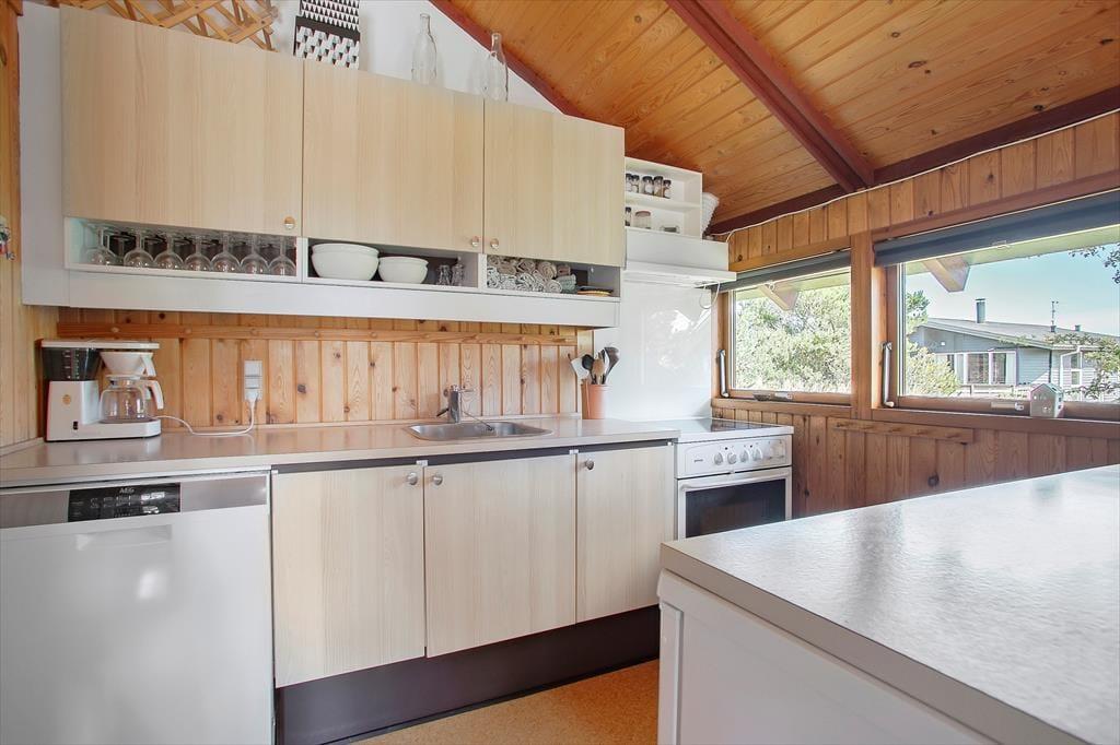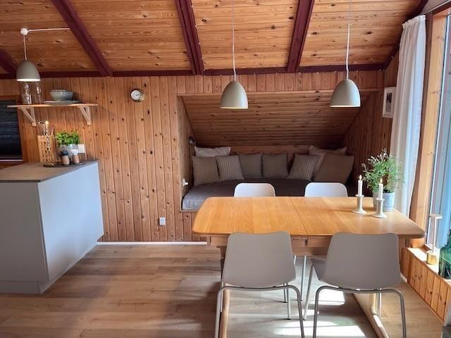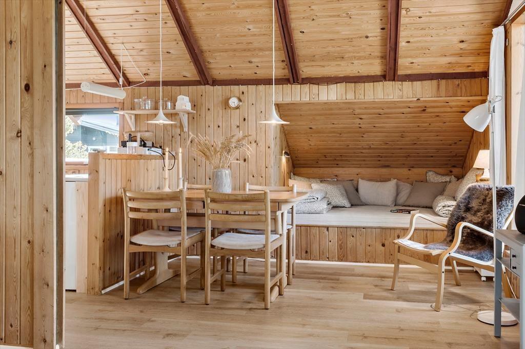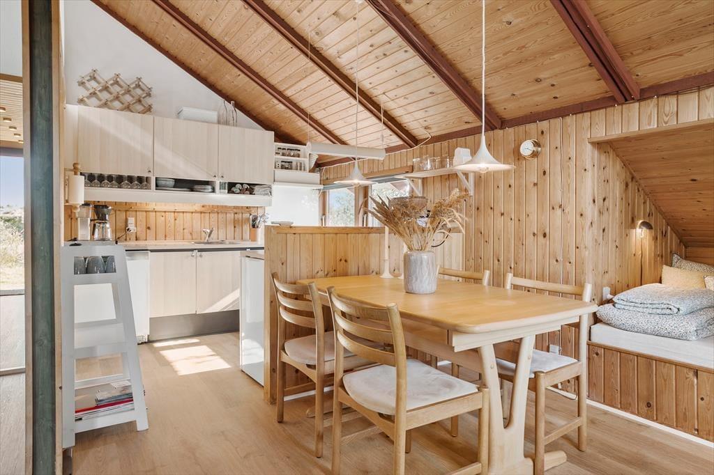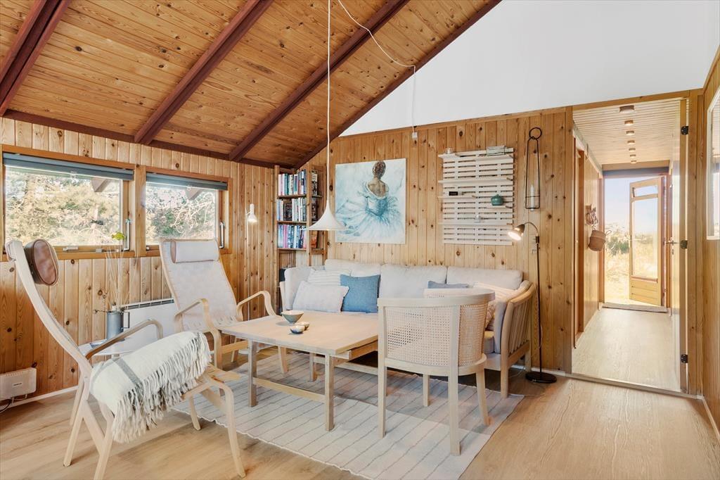 Når du træder ind i sommerhuset, mærker du straks den hyggelige og indbydende atmosfære. Det klassiske træinteriør danner en varm ramme om din ferie, og med plads til op til seks personer er der god mulighed for at samle familien eller vennegruppen til afslappende dage i fredelige omgivelser. Huset er udstyret med en varmepumpe, som sikrer et behageligt indeklima året rundt. Efter en dag i naturen kan du slappe af i stuen med en god bog eller foran fjernsynet.