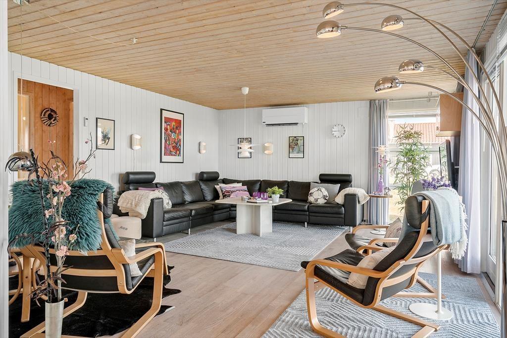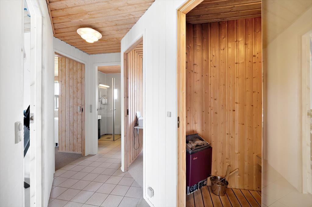 Når du træder ind i dette sommerhus, bliver du mødt af en varm og indbydende atmosfære. Her kan du og dine nærmeste nyde de hyggelige aftener foran brændeovnen, hvor ilden knitrer og skaber en helt særlig stemning. Huset rummer plads til op til otte personer, og indretningen sikrer, at alle kan finde deres yndlingssted – hvad enten det er i den lyse stue, ved spisebordet med udsigt til naturen eller i poolafdelingen. Poolen indbyder til leg og sjov for både store og små, mens saunaen tilbyder en afslappende stund efter en dag fuld af oplevelser.