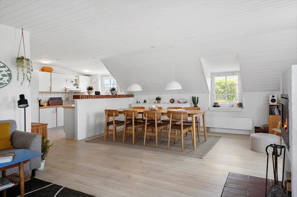 I dette hyggelige sommerhus bliver du mødt af en varm og indbydende atmosfære. Huset er indrettet med rummelige opholdsrum, der inviterer til samvær og afslapning. Den store stue, med sin knitrende brændeovn som centrum, danner rammen om hyggelige aftener med familie og venner. Fire soveværelser giver plads til op til 8 personer, og med husets charmerende detaljer, som det smukke stråtag og de traditionelle træelementer, føler du dig hurtigt hjemme. Uanset årstiden er sommerhuset et behageligt sted at være – her kan du skabe minder, der varer hele livet.