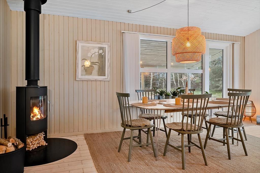 Det første, du lægger mærke til, når du træder ind i sommerhuset på Grå Rimme 7 i Klitmøller, er den varme og indbydende stemning, der fylder rummene. Her er tænkt over detaljerne, og du mærker straks, hvordan den afslappede ferieatmosfære falder på plads. De tre soveværelser med dobbeltsenge byder på komfort og ro, og især det ene værelse med luksuriøse elevationssenge sørger for, at du vågner udhvilet – klar til en ny feriedag. Den rummelige entre giver plads til at lande blødt efter dagens eventyr, og med både vaskemaskine og lille fryser bliver hverdagens små praktiske gøremål en smule lettere. Det lynhurtige internet gør det muligt at streame film, tjekke surf-forholdene eller holde kontakten til omverdenen – hvis du da overhovedet har lyst. Og takket være en effektiv varmepumpe kan du nyde en lun atmosfære året rundt uden at bekymre dig om energiregningen. Alt i alt et sommerhus, der emmer af hygge og hjemlighed – og hvor det er let at finde sig til rette.