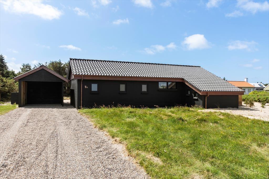 Udenfor finder du en stor, sydvestvendt terrasse, hvor solen forkæler dig det meste af dagen og ind i de lange, lyse sommeraftener. Her kan du nyde morgenkaffen i en komfortabel loungestol, lade børnene lege på den omkringliggende grund eller samles omkring grillen, mens aftenen falder på. De eksklusive havemøbler inviterer til lange måltider i det fri og afslapning med en god bog eller et glas vin. Carporten rummer både skyggefuld parkering og en el-lader til bilen – så det er nemt at holde ferie med grøn samvittighed. Med kun få hundrede meter til Vesterhavet og de vilde klitlandskaber, er der heller aldrig langt til en spontan gåtur i sandet eller en dukkert i bølgerne.