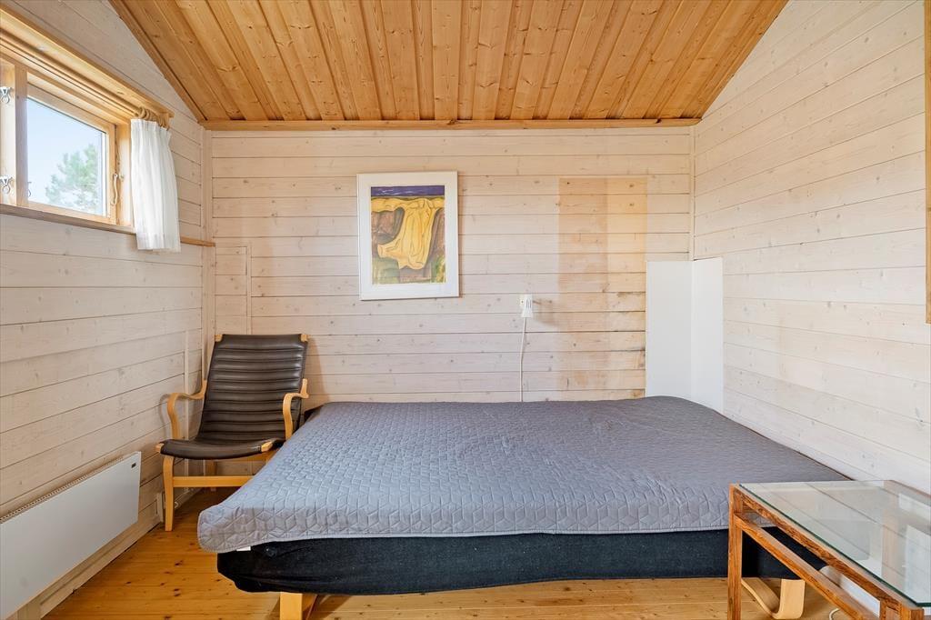 Indenfor møder du en varm og indbydende atmosfære, hvor den klassiske sommerhushygge er nøgleordet. Husets hjerte er den rummelige, niveauforskudte opholds- og spisestue, hvor de mange vinduespartier lader lyset strømme ind og forbinder dig med naturen udenfor. Her kan du samles med familien til hyggelige måltider eller trække dig tilbage i sofahjørnet med en god bog, mens brændeovnens knitren sætter stemningen. Det energivenlige hjem sikrer et behageligt indeklima året rundt takket være både luft-til-luft varmepumpe og brændeovn – perfekt til både sommerens feriedage og vinterens stille ophold.