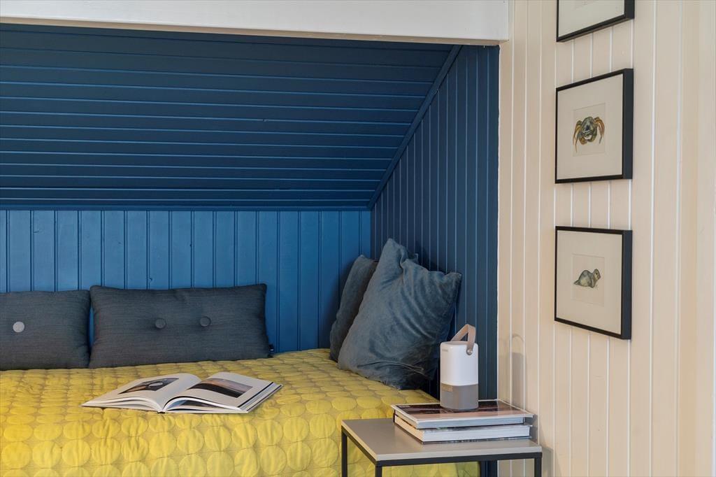 Træd indenfor i et sommerhus, hvor hver krog emmer af charme og hygge. Her mødes den varme glød fra den hyggelige brændeovn med en indbydende og lys stue, der byder på en gennemført kombination af moderne bekvemmeligheder og rustik autenticitet. Du kan forestille dig de dejlige aftener, hvor du og dine nærmeste samles om ilden, mens latter og gode samtaler fylder rummet. De nøje udvalgte møbler og den bløde belysning skaber en atmosfære, der inviterer til afslapning og fordybelse. De fine detaljer i indretningen, som de hyggelige tekstiler og de smukke træoverflader, giver sommerhuset et personligt præg, der gør det til mere end bare en feriebolig – det er et hjem væk fra hjemmet. Her mærkes den ægte fornemmelse af ro og velvære, som kun et gennemarbejdet sommerhus kan tilbyde, og du vil uden tvivl føle, at hver eneste detalje er med til at gøre dit ophold helt særligt.