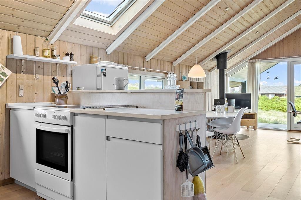 Udenfor åbner sommerhusets beliggenhed op for en verden af naturoplevelser. Du træder ud i en fredfyldt have, der ligger tæt på de betagende klitter, som gør området så unikt. Her kan du mærke den friske brise og høre naturens egne lyde, mens du slår dig ned med en god bog eller nyder en kop kaffe på den hyggelige terrasse. Det er et sted, hvor du med lethed kan opleve den skønne, vilde natur og lade tankerne flyve frit. Den rolige have indbyder til både leg og afslapning, og det er nemt at forestille sig, hvordan solens stråler leger med skyggerne, mens dagen skrider frem. Samtidig giver den nære beliggenhed til klitterne en helt særlig følelse af frihed og eventyr, hvor du med blot nogle få skridt er tæt på naturens egne vidundere.