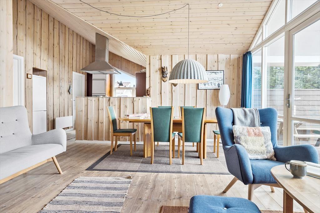 Træd indenfor i dette indbydende sommerhus, hvor de varme toner fra brændeovnen straks skaber en følelse af hjemlig hygge og tryghed. Her bliver du mødt af en velindrettet stue, der kombinerer moderne komfort med rustik charme – et sted, hvor du og dine nærmeste kan samles om den knitrende ild og nyde de rolige aftener. De bløde materialer og omhyggeligt udvalgte farver afspejler den nordjyske natur og skaber en harmonisk ramme for afslapning og samvær. Samtidig giver saunaen et strejf af luksus, hvor du kan lade dagens stress forsvinde, mens alle husdyr føler sig velkomne og trygge i deres eget lille hjørne af sommerhusets varme atmosfære. Denne indretning kombinerer komfort og enkel elegance, så du med lethed kan lade tankerne flyve væk til en ferie fyldt med ro og fornyet energi.