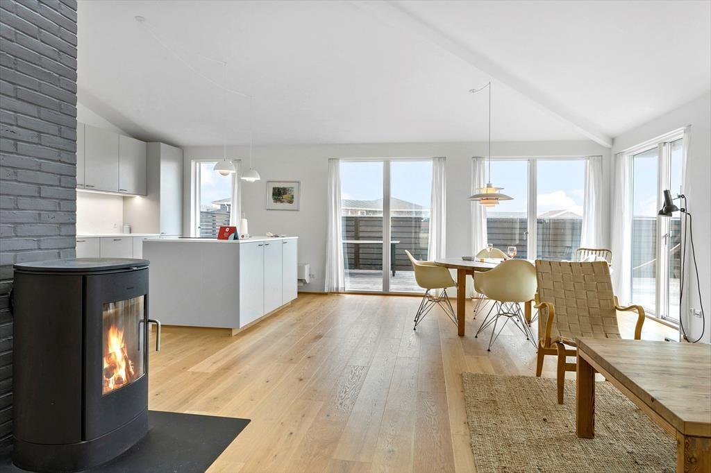 Træd ind i et lyst og rummeligt sommerhus, hvor det moderne møder det hyggelige i en indretning, der er både stilfuld og funktionel. Sommerhuset er udstyret med al tænkelig komfort og indrettet for at skabe en afslappet atmosfære, hvor du kan koble af og nyde tilværelsen. Forestil dig de afslappende stunder i spabadet efter en dag fuld af oplevelser, eller varm dig i saunaen, mens mørket falder på og stilheden i Klitmøller omslutter huset. Dette sommerhus er jeres base for et ophold, hvor både krop og sjæl kan finde ro og ny energi.