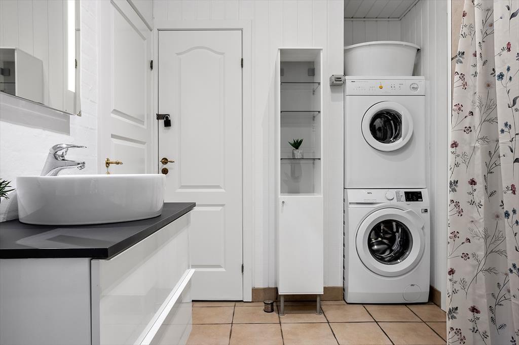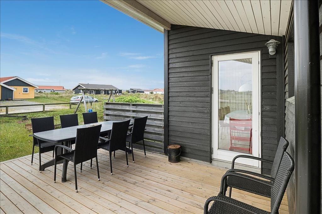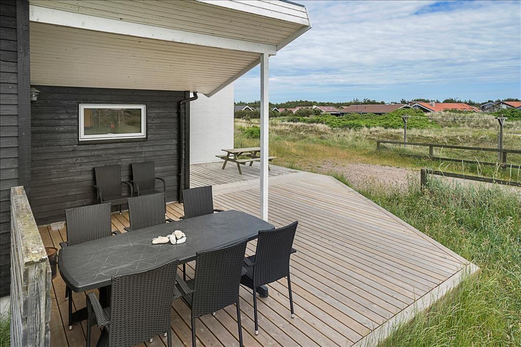 Udenfor finder du en stor og solrig terrasse, der indbyder til fælles måltider og afslapning under åben himmel. Terrassen er rummelig nok til hele familien og udstyret med alt, hvad der skal til for at gøre sommerdagene ekstra særlige. Måske starter dagen med friskbrygget kaffe på terrassen, mens duggen fordamper, eller slutter af med en lækker grillmiddag, mens solnedgangen maler himlen i gyldne nuancer. Den omkringliggende natur og haven giver plads til leg og aktiviteter, så alle kan finde noget, der gør ferien til noget helt særligt.