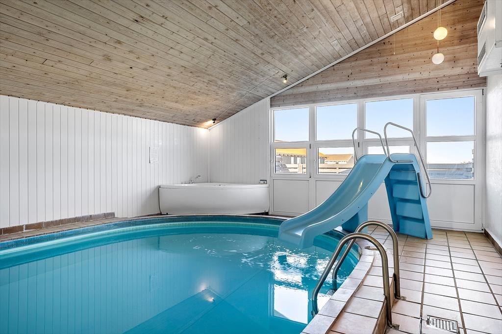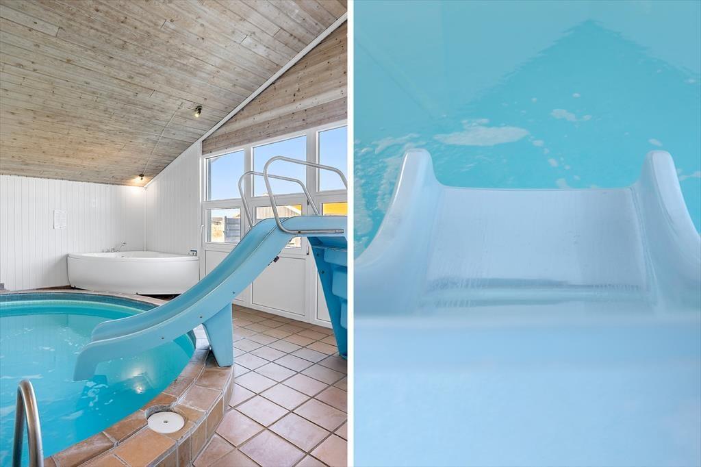 Når du træder ind i dette rummelige poolhus, bliver du mødt af en indbydende atmosfære, der straks vækker feriestemningen. Huset byder på plads til op til 10 personer, hvilket gør det ideelt til større familier eller to vennepar med børn. Det centrale samlingspunkt er den lyse og hyggelige stue, hvor brændeovnens varme og knitrende lyd indbyder til afslapning efter en dag fuld af oplevelser. Poolafdelingen er et sikkert hit blandt både børn og voksne – her kan de yngste plaske løs, mens de voksne finder tid til lidt wellness og afslapning. Alt i huset er gennemtænkt for at skabe de perfekte rammer om en ferie fyldt med hygge og gode minder.