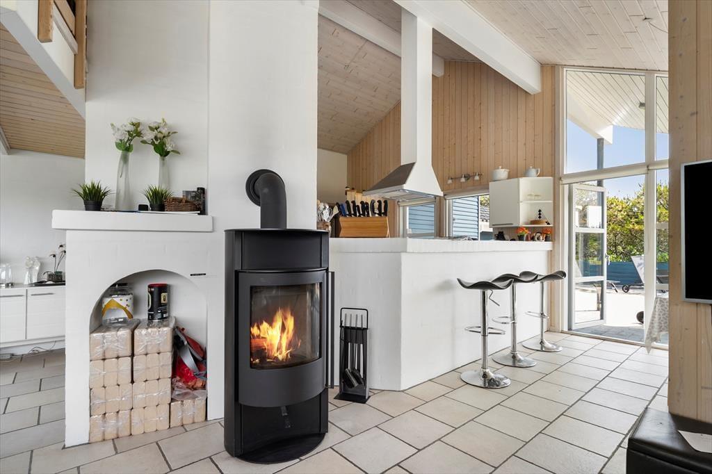 Dette rummelige sommerhus er designet til at skabe de perfekte rammer for afslapning og samvær. Med plads til otte personer er der rig mulighed for at samle både familie og venner. Hjertet i huset er det store, åbne opholdsrum, hvor køkken, spiseplads og stue smelter sammen til ét indbydende område. Her kan du nyde varme stunder foran den knitrende brændeovn, som skaber en hyggelig atmosfære, mens vinden rusker udenfor. Når dagen går på hæld, kan du forkæle dig selv med en tur i spaen eller saunaen, der inviterer til ren afslapning og wellness.din ferie uforglemmelig.