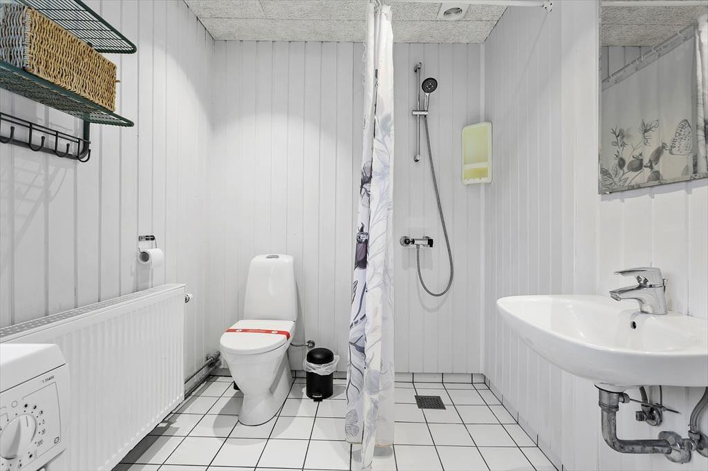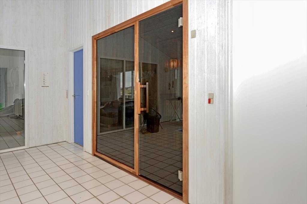 Fra køkkenet er der adgang til et sjovt poolrum, hvor både børn og voksne kan få nogle gode timer til at gå i det 17m2 store bassin eller i spabadet, hvis man mest af alt trænger til at slappe af og lade kroppen få lidt ny energi. Her har i ligeledes muligheden for at benytte et af husets helt store aktiver - den nye store sauna fra 2024. I forbindelse med poolrummet ligger sommerhusets ene badeværelse.