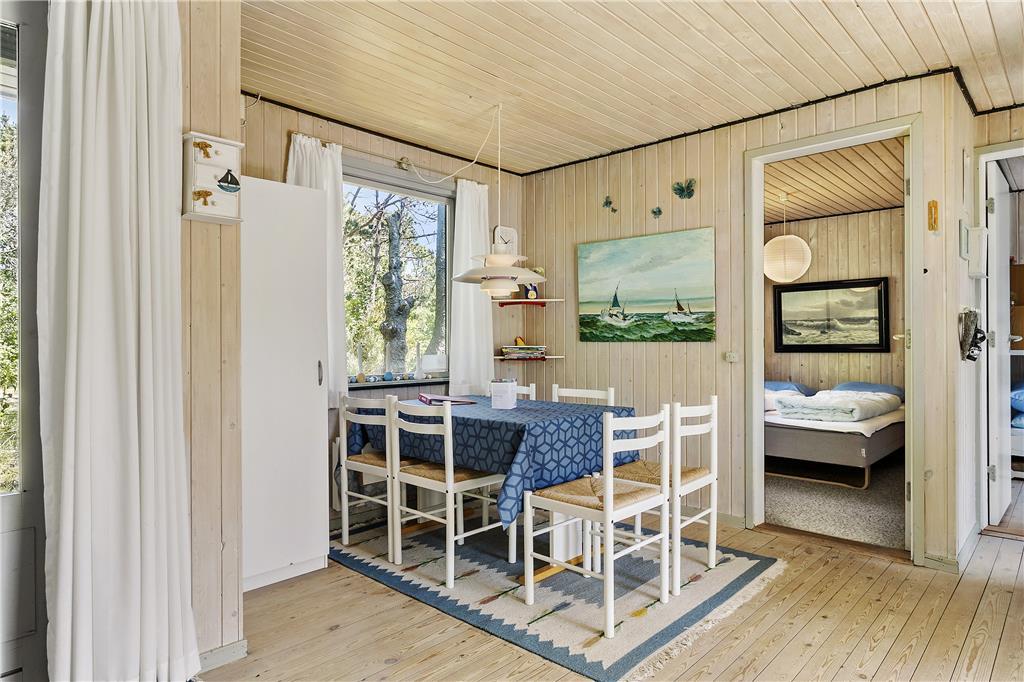 Træd indenfor i dette hyggelige sommerhus, der med sin klassiske indretning og varme atmosfære indbyder til afslapning. Den rummelige stue er hjertet i huset, hvor du kan slå dig ned foran brændeovnen og mærke roen brede sig, mens flammerne knitrer. Her er der plads til at være sammen som familie eller par, uanset om I spiller spil, ser en film eller bare nyder hinandens selskab. Huset er indrettet til at skabe rammerne om hyggelige feriedage, hvor livet leves i et roligt tempo.