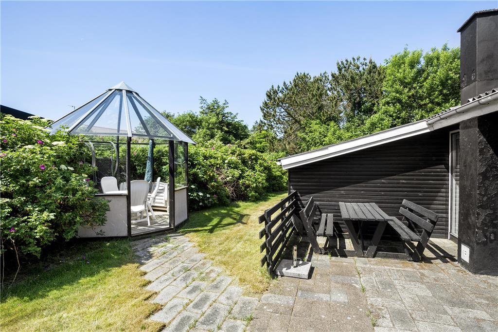 Udenfor finder du en skøn, sydvendt terrasse, hvor solen forkæler dig fra morgen til aften. Terrassen er ideel til morgenkaffe, frokoster i solens varme og grillaftener, hvor I kan nyde de lange, lyse sommeraftener. Den omkringliggende grund giver også plads til, at børn eller husdyr kan lege frit, da her er masser af luft og ro. Her kan I lægge hverdagens travlhed bag jer og lade naturens stilhed tage over.