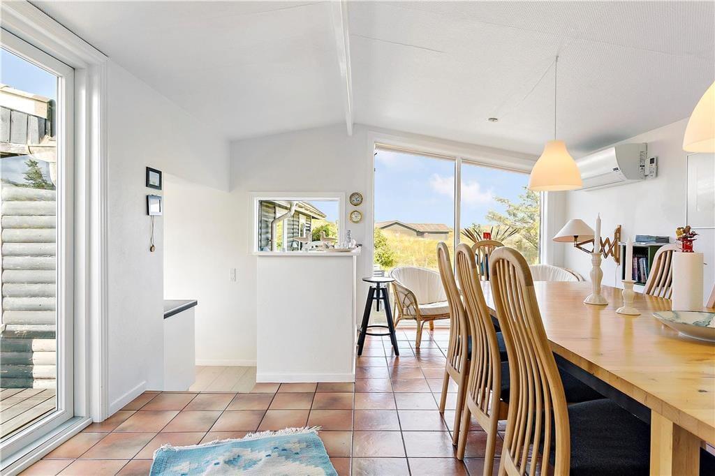 Træd indenfor i et indbydende og lunt sommerhus, hvor en charmerende brændeovn danner rammen om hyggelige stunder. Huset er perfekt til både små familier og vennegrupper med sine seks sovepladser, og de store vinduer i opholdsområdet inviterer lyset og naturen helt indenfor. Her kan I samles til brætspil eller bare nyde roen med en god bog, mens varmen fra brændeovnen spreder sig. Det funktionelle køkken er godt indrettet og åbner op for muligheden for at lave lækre feriemåltider, som kan nydes sammen omkring spisebordet.