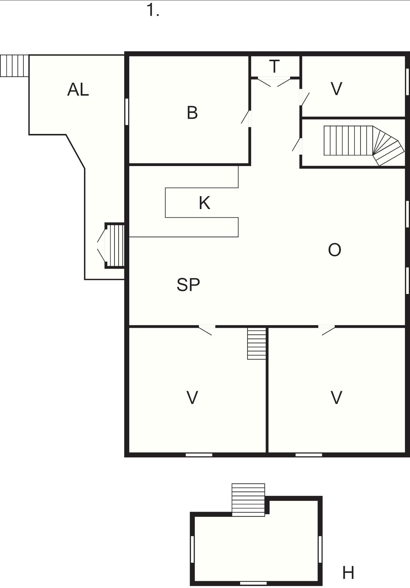 1 Opholdsstue: Brændeovn, stereoanlæg, Chromecast, tv, Bluetooth