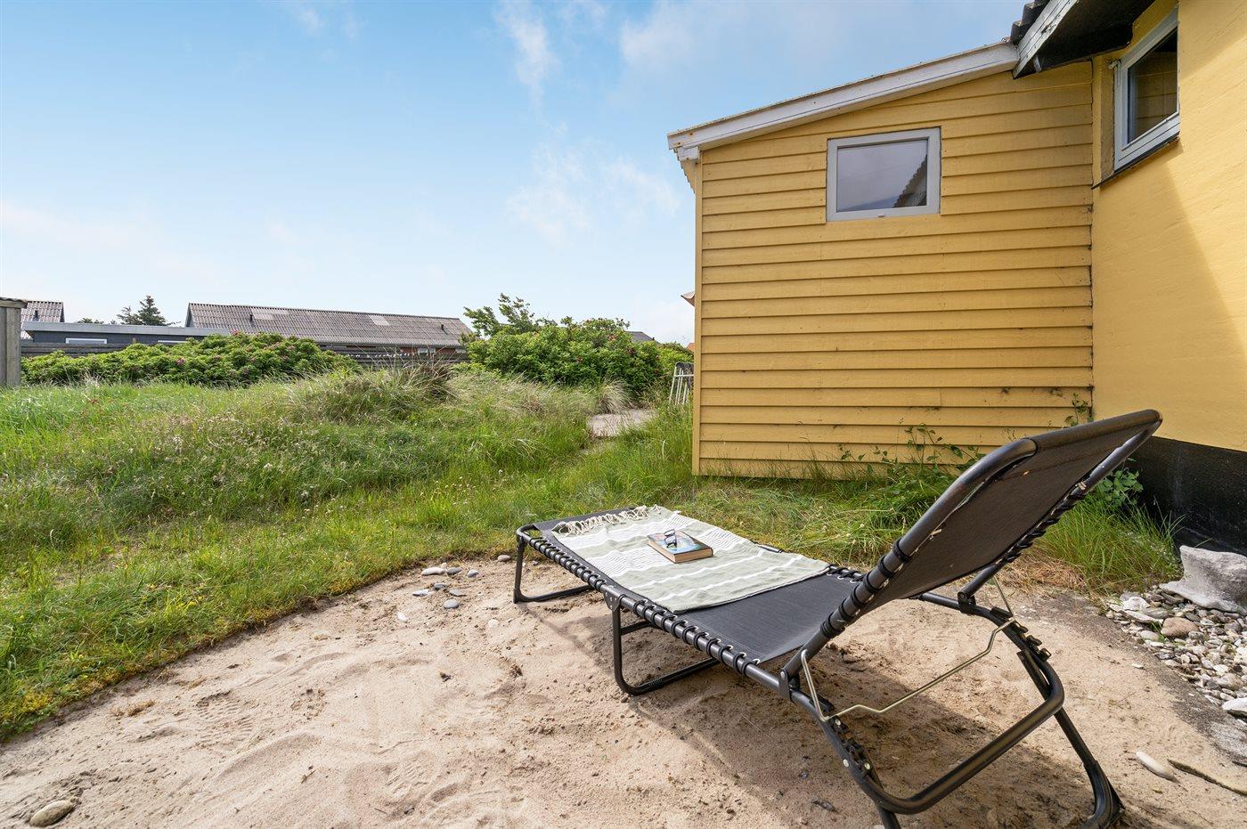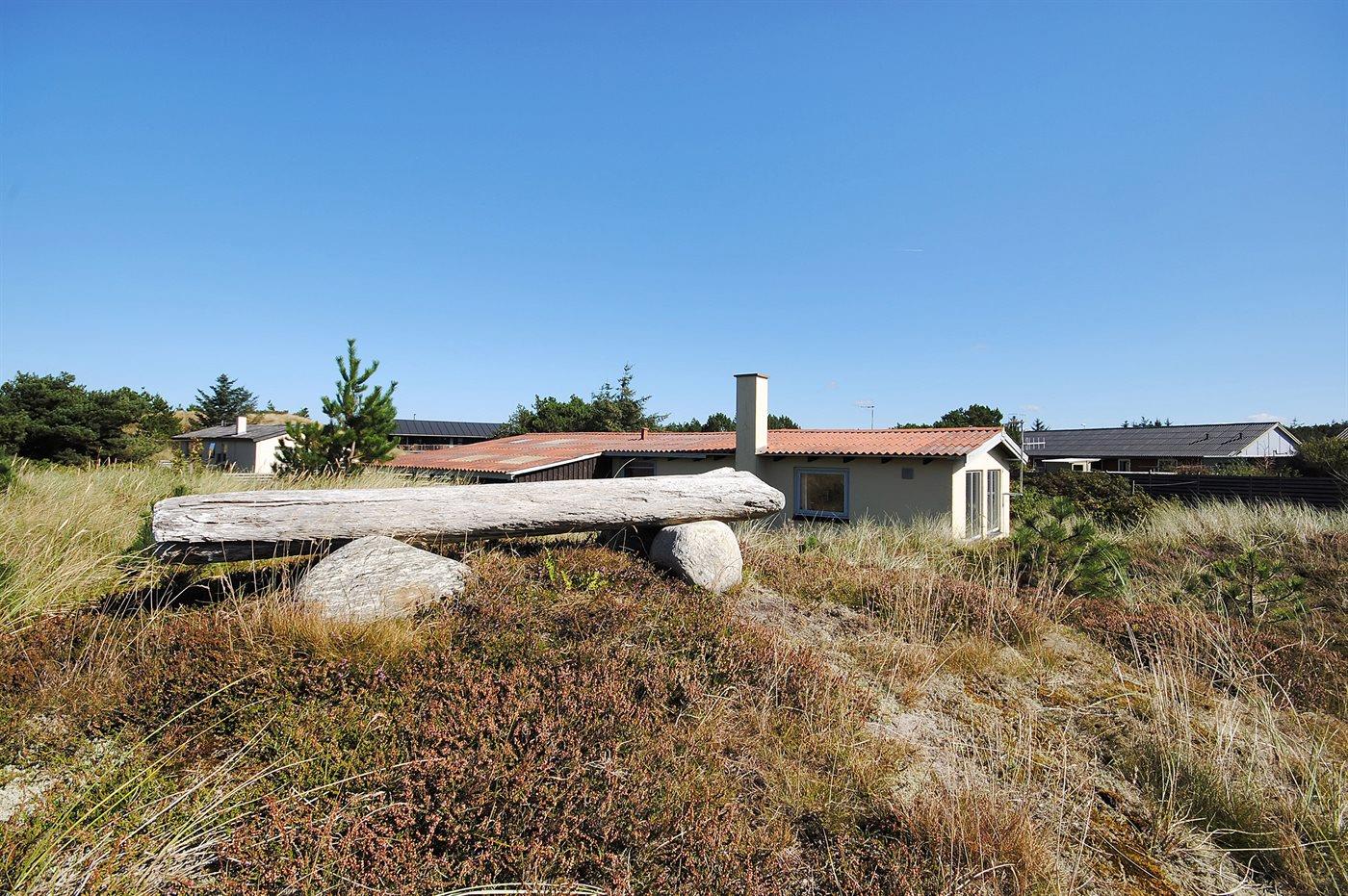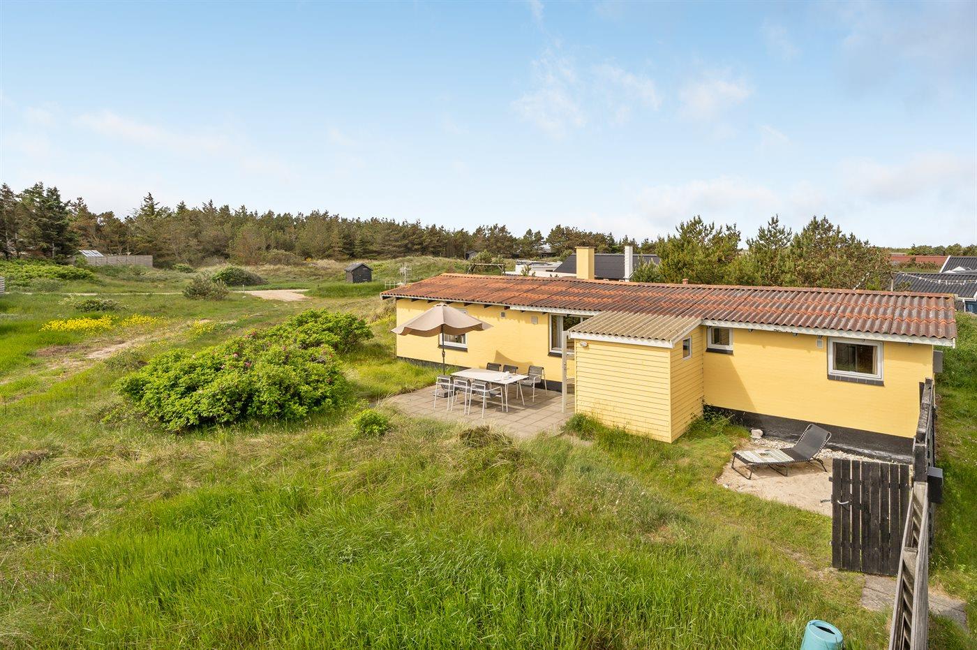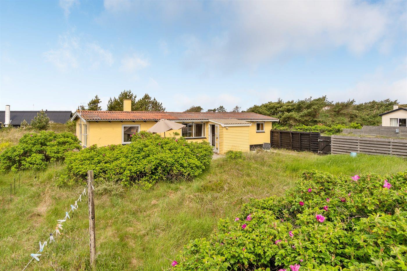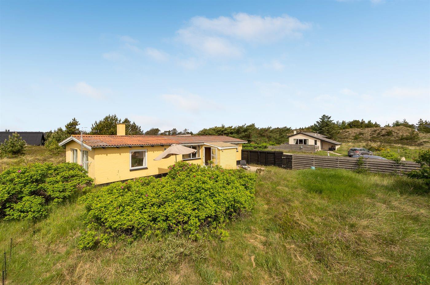 Godt beliggende sommerhus i sten, bygget i 1965 og renoveret i 1992. Huset ligger i et dejligt veludbygget sommerhusområde, i gåafstand til såvel byens forretninger som til det brusende Vesterhav. Til huset hører åben terrasse med havemøbler. Dels trægulve og dels linoleumsgulve samt trælofter og dels trævægge og dels vandskurede vægge. Pænt badeværelse med bruser og gulvvarme. Stort køkken/alrum, der er udstyret med bl.a. opvaskemaskine og fryser. Opholdsstue, der er indrettet med brændeovn, TV og stereoanlæg. Vaskemaskine til rådighed. Husets sovepladser fordeler sig på 3 soverum: 1 med dobbeltseng, 1 med 2 enkeltsenge og 1 med 1 enkeltseng. Et pænt sommerhus for familien, der ønsker en rolig ferie i et attraktivt område med gode aktivitetsmuligheder, bl.a. badning, fiskeri og windsurfing.
