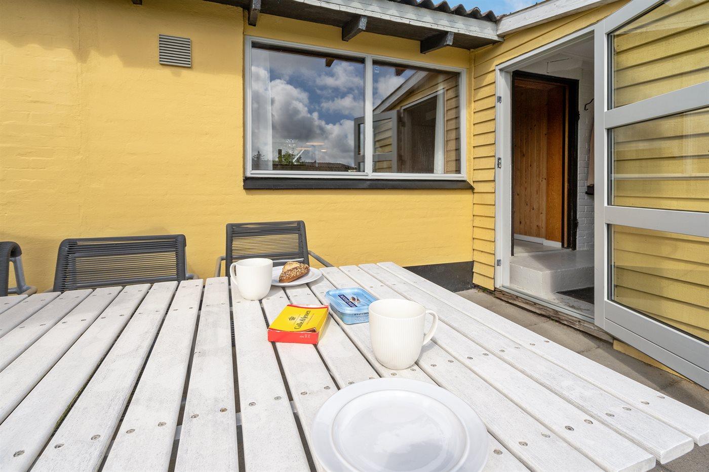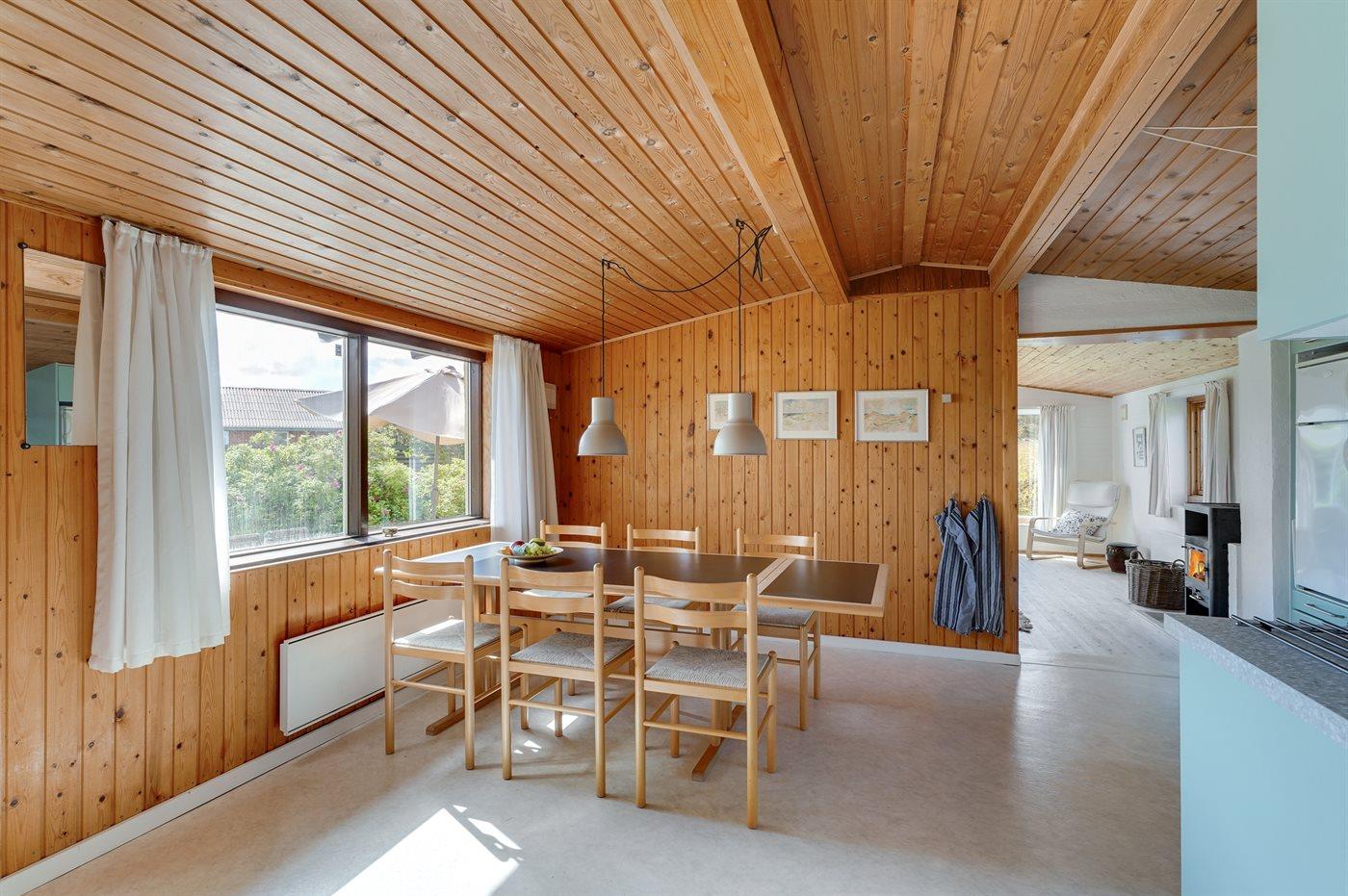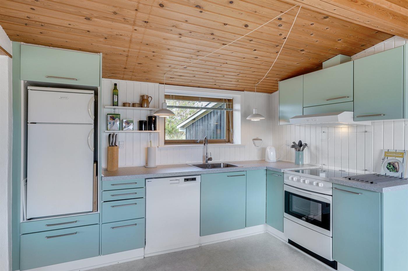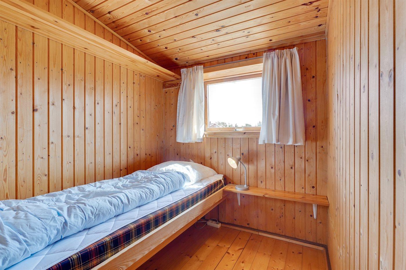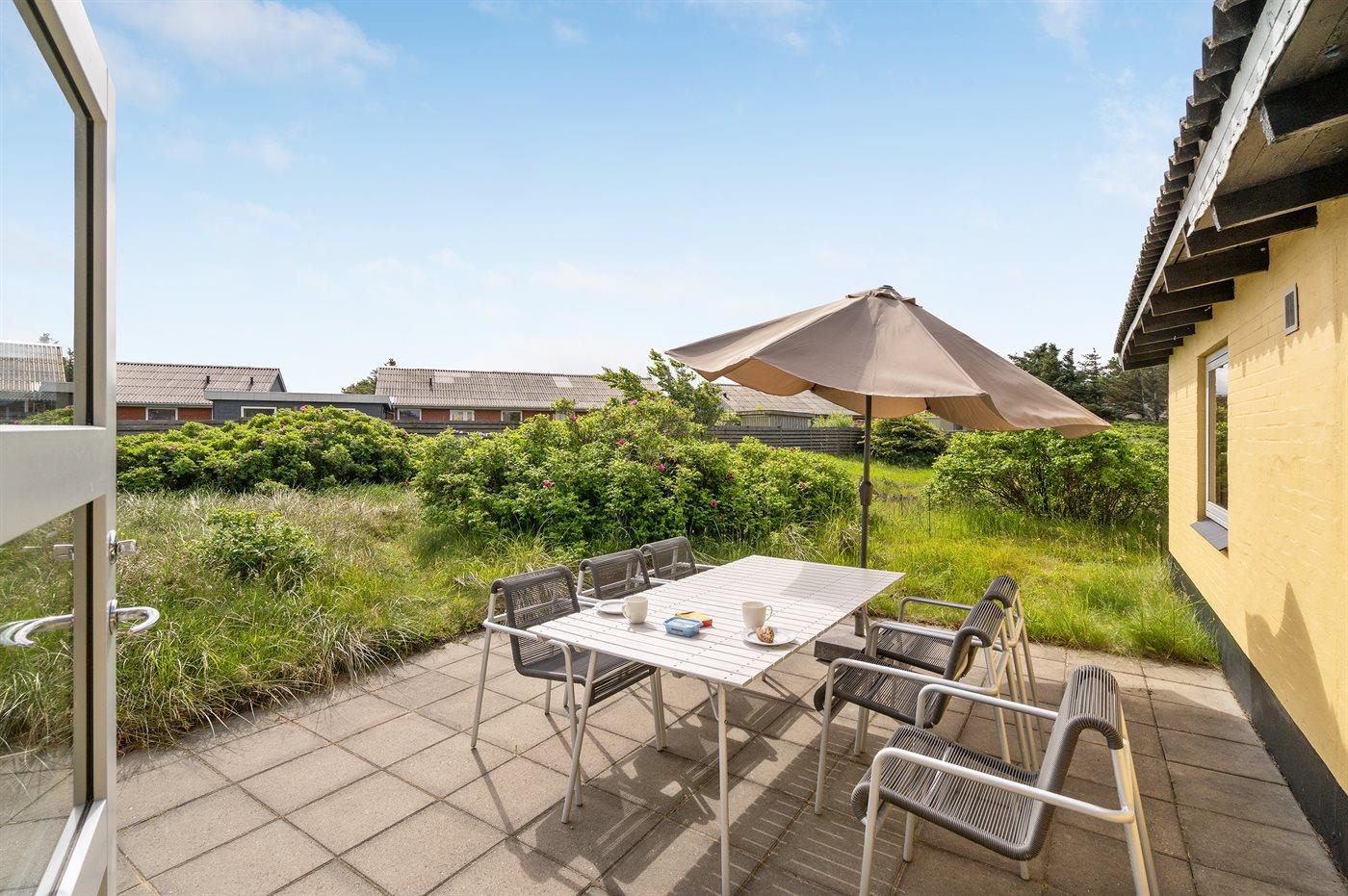 Godt beliggende sommerhus i sten, bygget i 1965 og renoveret i 1992. Huset ligger i et dejligt veludbygget sommerhusområde, i gåafstand til såvel byens forretninger som til det brusende Vesterhav. Til huset hører åben terrasse med havemøbler. Dels trægulve og dels linoleumsgulve samt trælofter og dels trævægge og dels vandskurede vægge. Pænt badeværelse med bruser og gulvvarme. Stort køkken/alrum, der er udstyret med bl.a. opvaskemaskine og fryser. Opholdsstue, der er indrettet med brændeovn, TV og stereoanlæg. Vaskemaskine til rådighed. Husets sovepladser fordeler sig på 3 soverum: 1 med dobbeltseng, 1 med 2 enkeltsenge og 1 med 1 enkeltseng. Et pænt sommerhus for familien, der ønsker en rolig ferie i et attraktivt område med gode aktivitetsmuligheder, bl.a. badning, fiskeri og windsurfing.