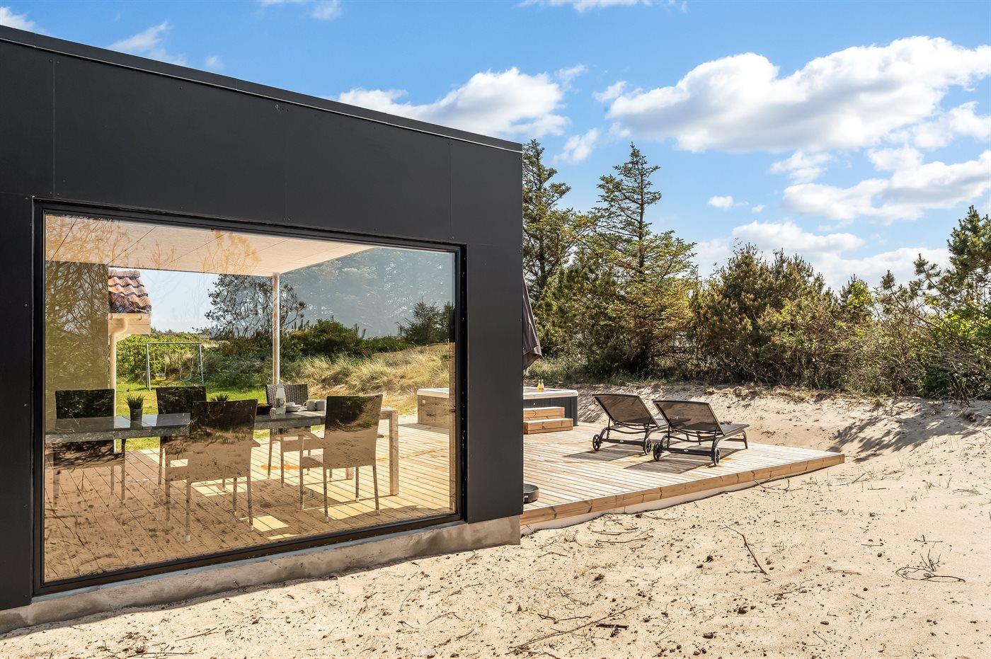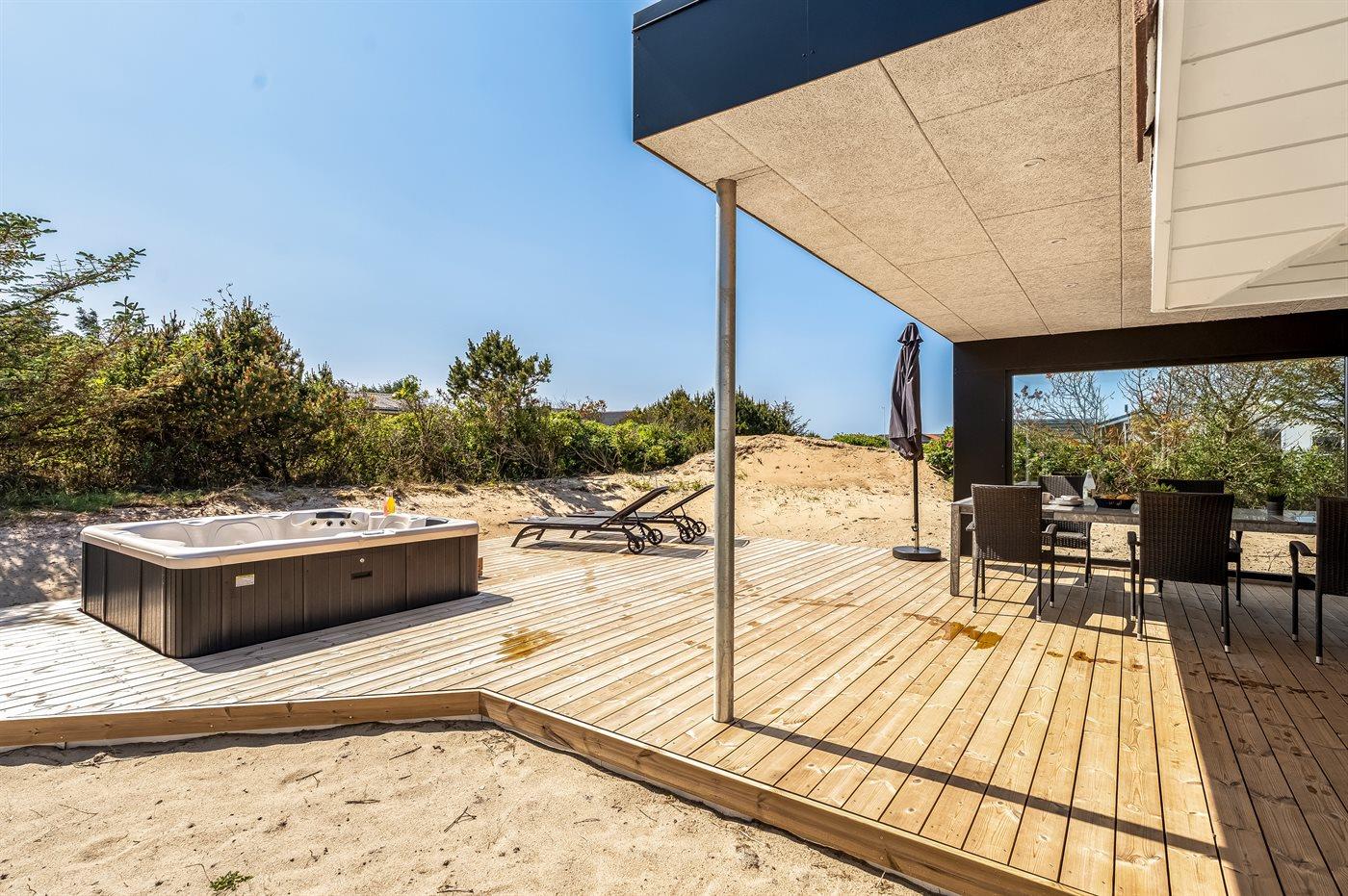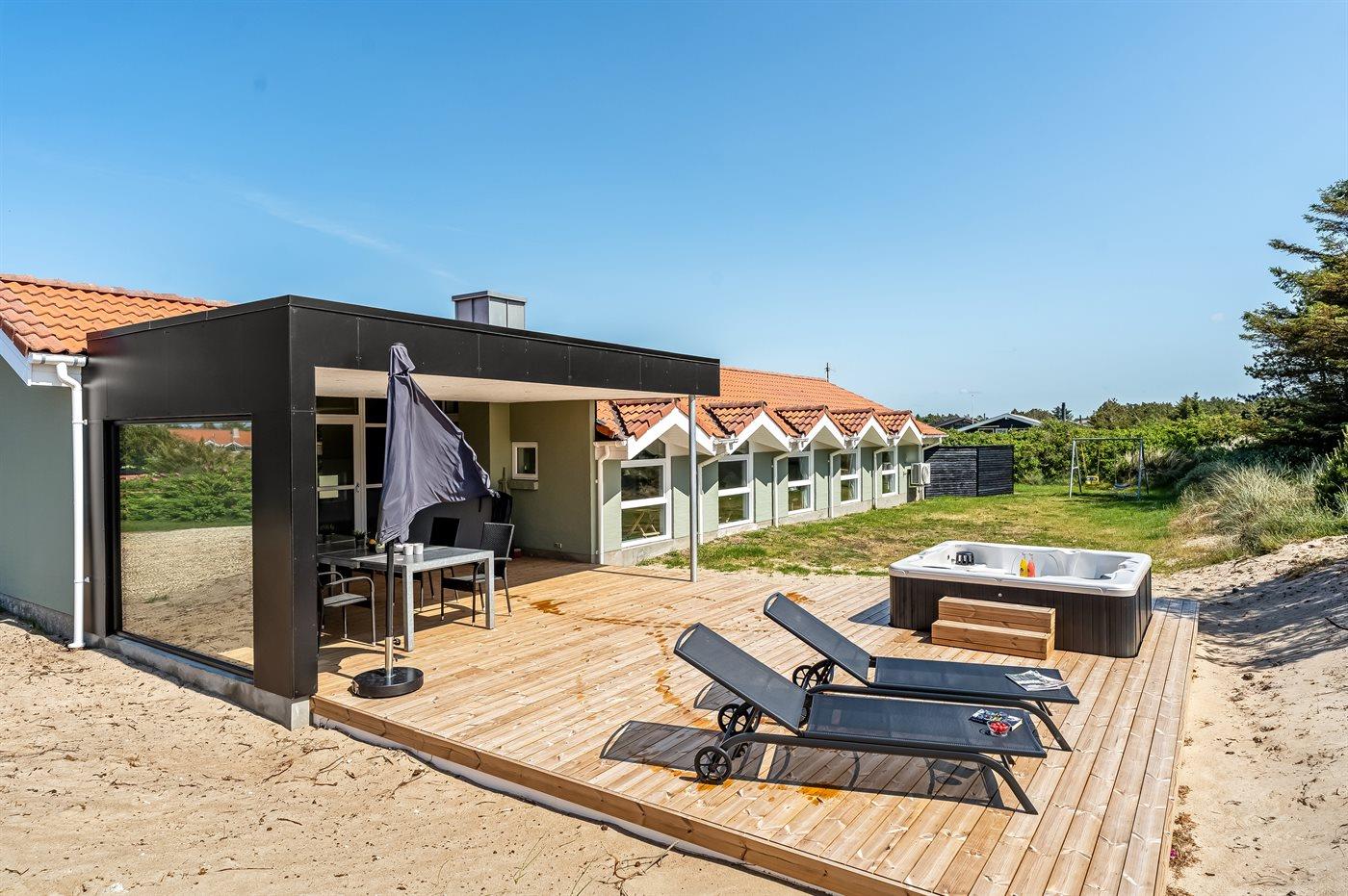 Dejligt sommerhus i Klitmøller med indendørs pool, spa, sauna og stor terrasse nær havet.