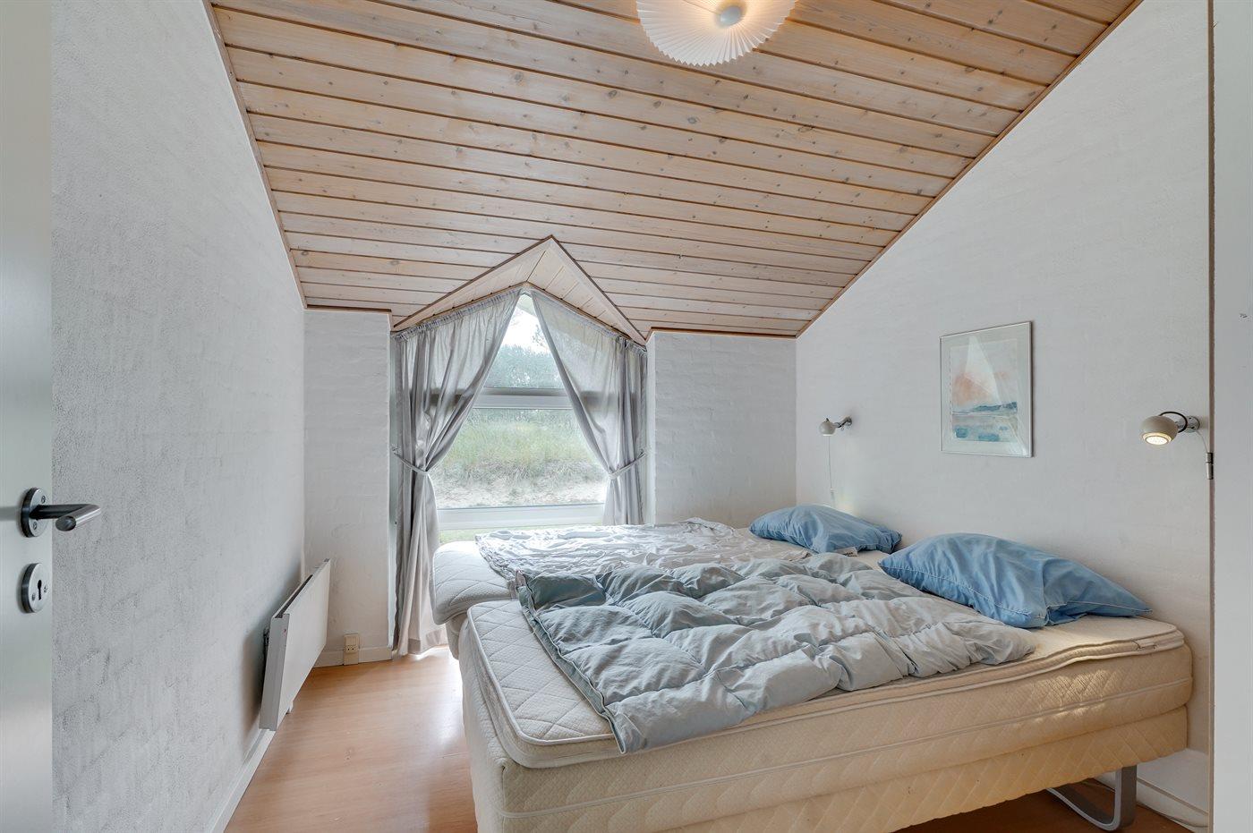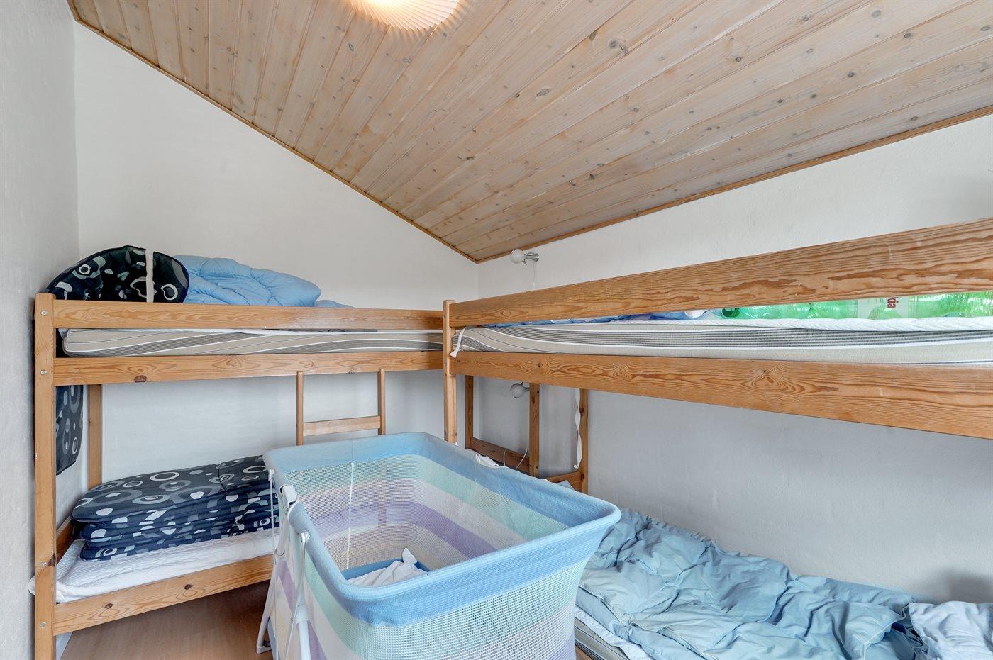 Der er i alt 4 soveværelser. Sovepladserne fordeler sig på: 4 sovepladser i dobbeltsenge. 2 sovepladser i enkeltsenge. 4 sovepladser i køjesenge. Derudover er der 1 stk. barneseng.