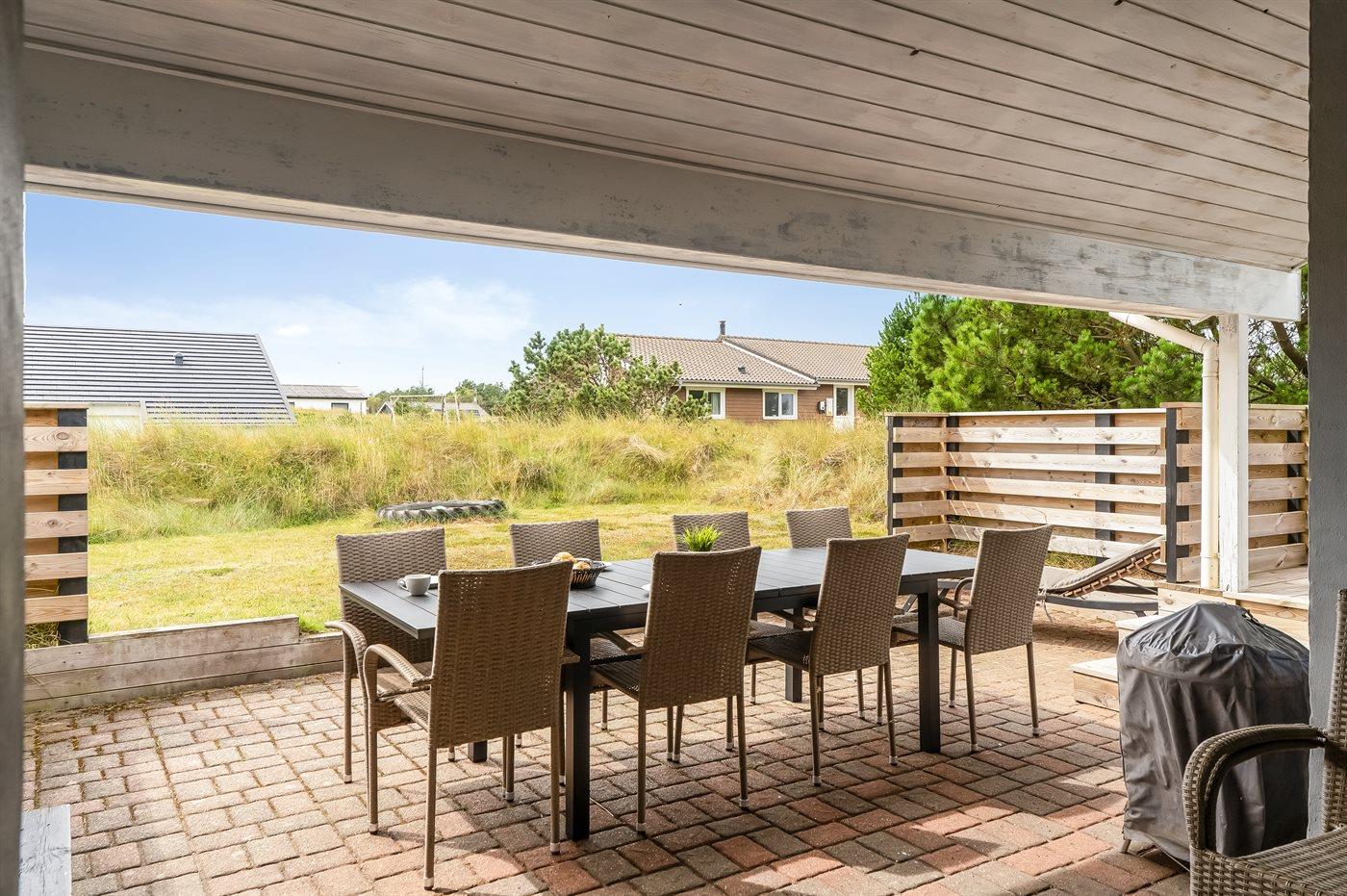 Ferieboligen er beliggende på en 1000 m² stor klitgrund. Der er 600 m til havet. Nærmeste forretning er beliggende i en afstand af 500 m. Til ferieboligen hører 30 m² terrasseareal. Desuden er der 6 m² overdækket terrasse. Udgang til solgård. Gynge. Sandkasse. Parkering ved ferieboligen.