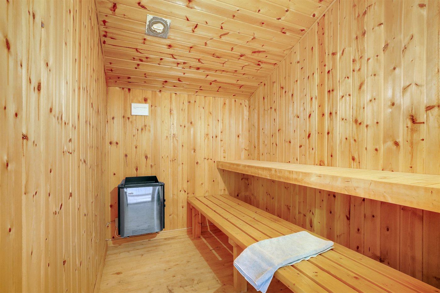 Der er 1 badeværelse med bruseniche og 1 toilet.. Der er gulvvarme på 1 badeværelse. I saunaen er der mulighed for afslapning.