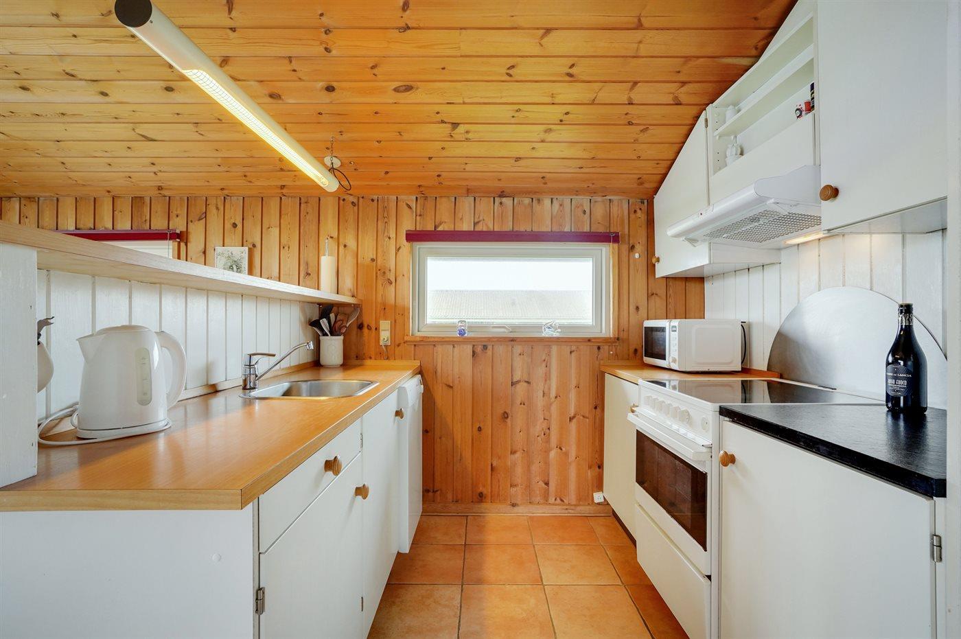 Køkkenet er udstyret med 1 køleskab. Der er 4 keramiske kogeplader, varmluftovn, mikrobølgeovn samt opvaskemaskine.