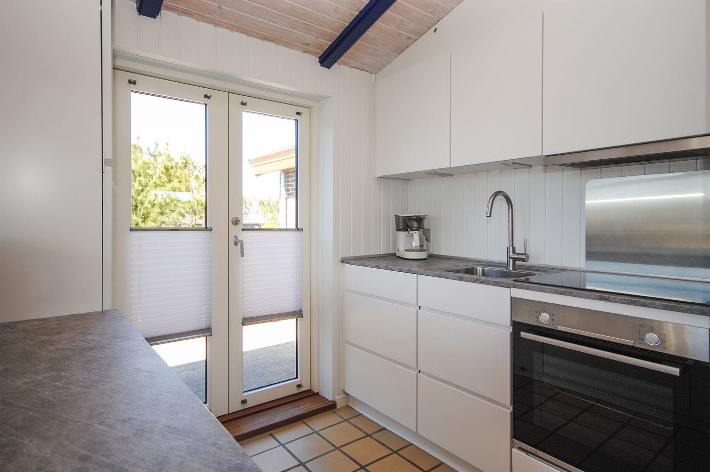 Køkkenet er udstyret med 1 køleskab. Der er 4 induktionskogeplader, varmluftovn, mikrobølgeovn samt opvaskemaskine.