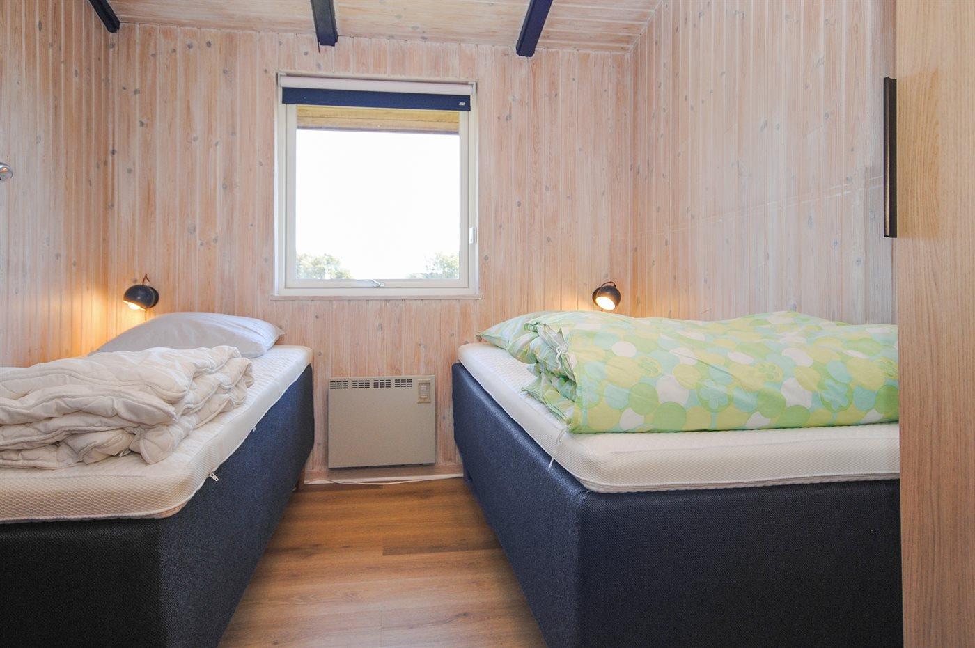 Der er i alt 3 soveværelser. Sovepladserne fordeler sig på: 4 sovepladser i dobbeltsenge. 2 sovepladser i enkeltsenge.