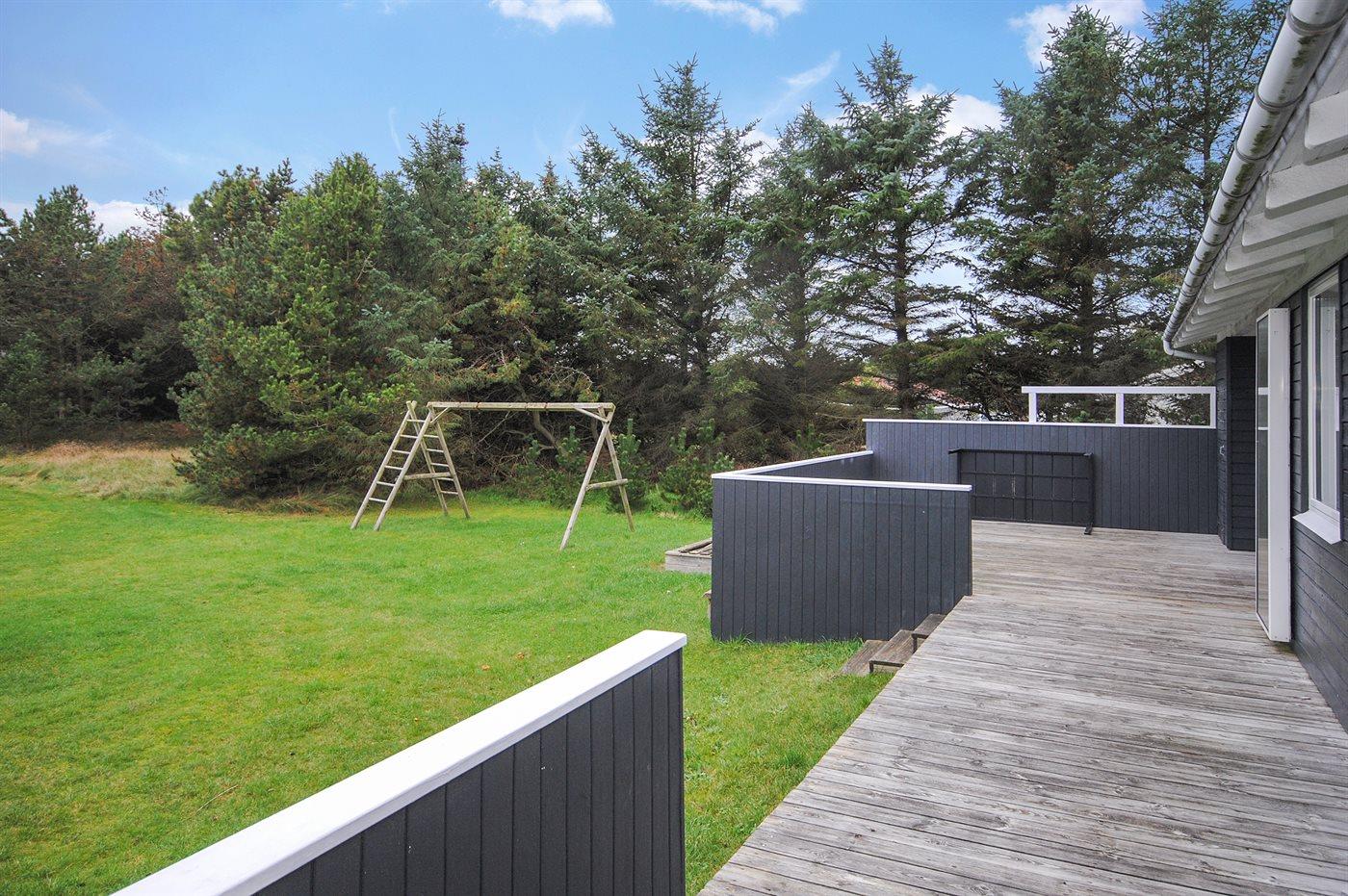 Ferieboligen er beliggende på en 1695 m² stor naturgrund. Der er 500 m til havet. Nærmeste forretning er beliggende i en afstand af 600 m. Til ferieboligen hører 40 m² terrasseareal. Desuden er der 6 m² overdækket terrasse. Gynge. Sandkasse. Parkering ved ferieboligen.