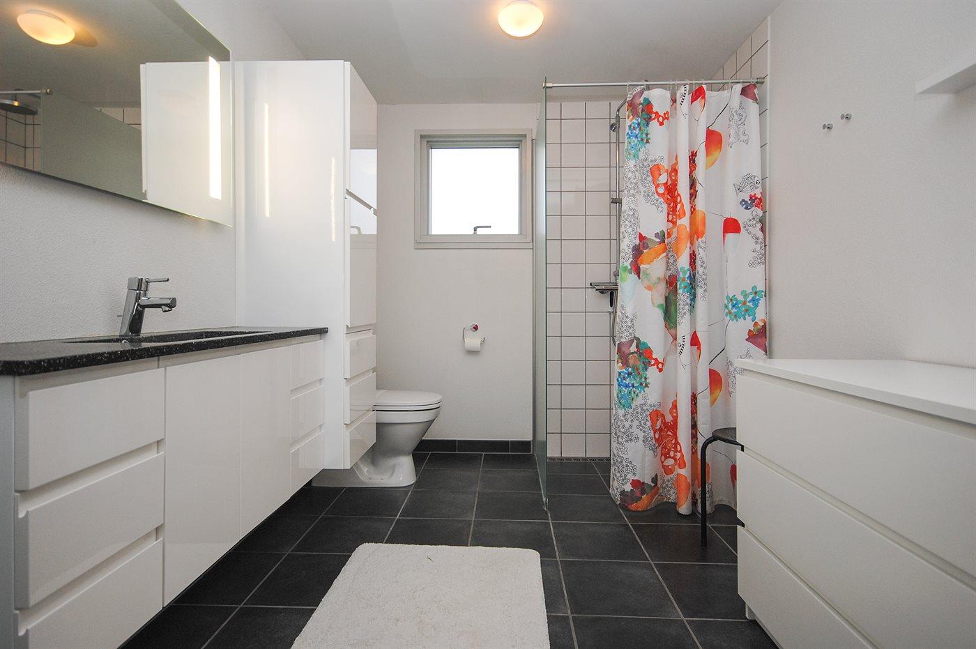 Der er 1 badeværelse med bruseniche og 1 toilet.. Der er gulvvarme på 1 badeværelse.