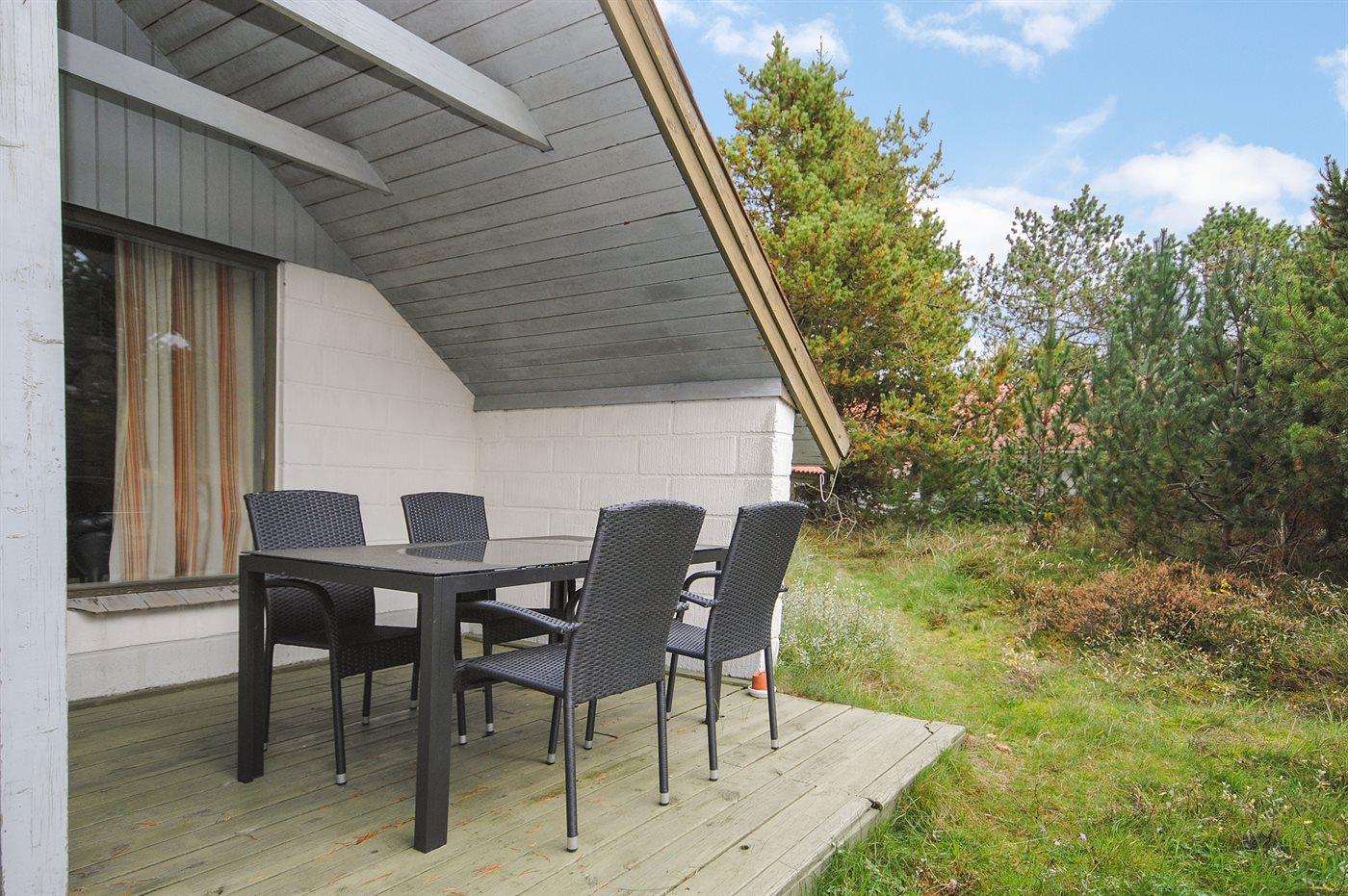 Ferieboligen er beliggende på en 1200 m² stor naturgrund. Der er 800 m til havet. Nærmeste forretning er beliggende i en afstand af 800 m. Til ferieboligen hører 30 m² terrasseareal. Desuden er der 12 m² overdækket terrasse. Parkering ved ferieboligen.