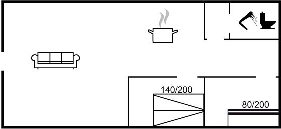 Der er i alt 2 soveværelser. Sovepladserne fordeler sig på: 2 sovepladser i dobbeltseng. 2 sovepladser i køjeseng.