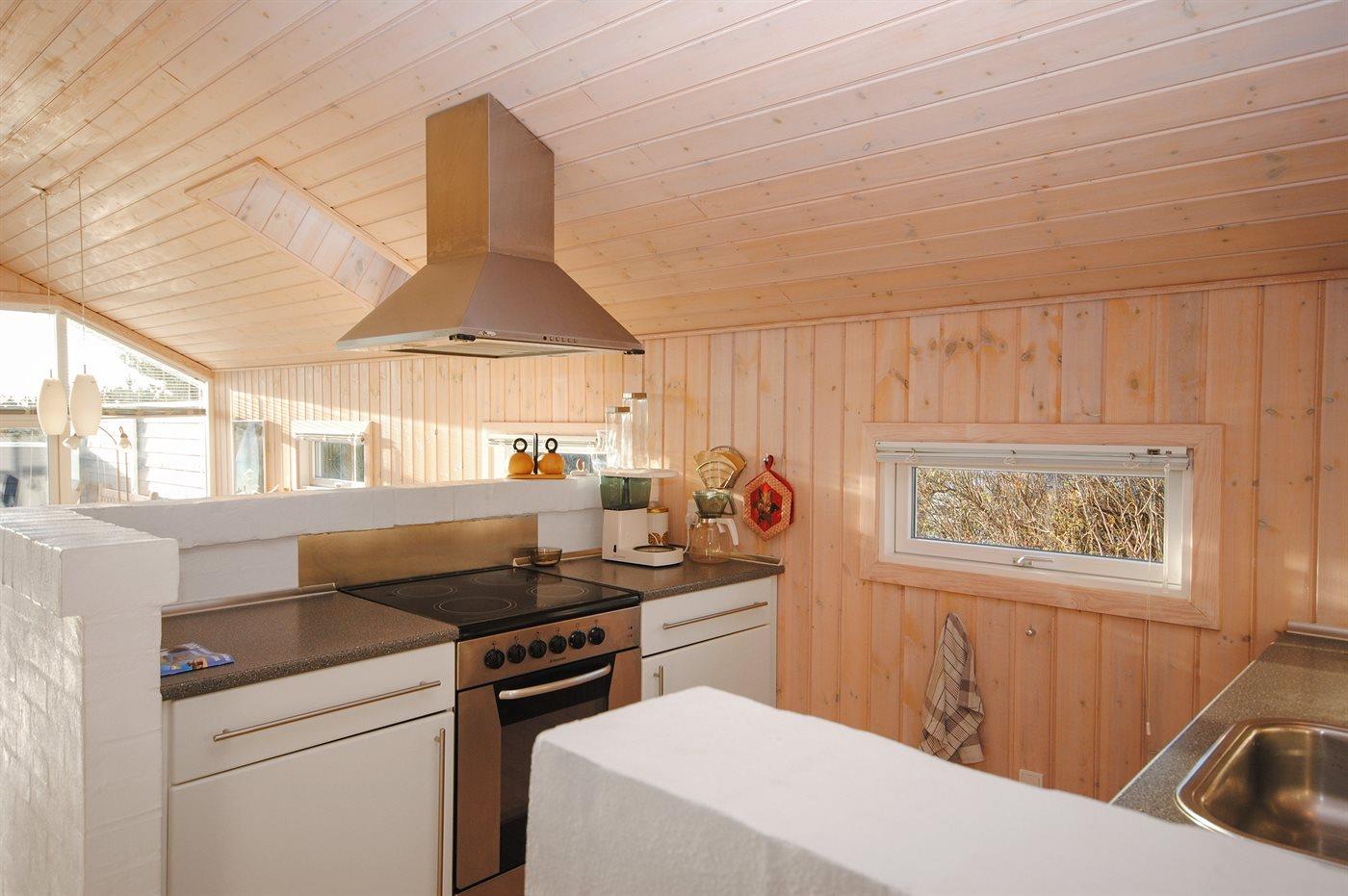 Køkkenet er udstyret med 1 køleskab. Der er 4 keramiske kogeplader, varmluftovn, mikrobølgeovn samt opvaskemaskine.