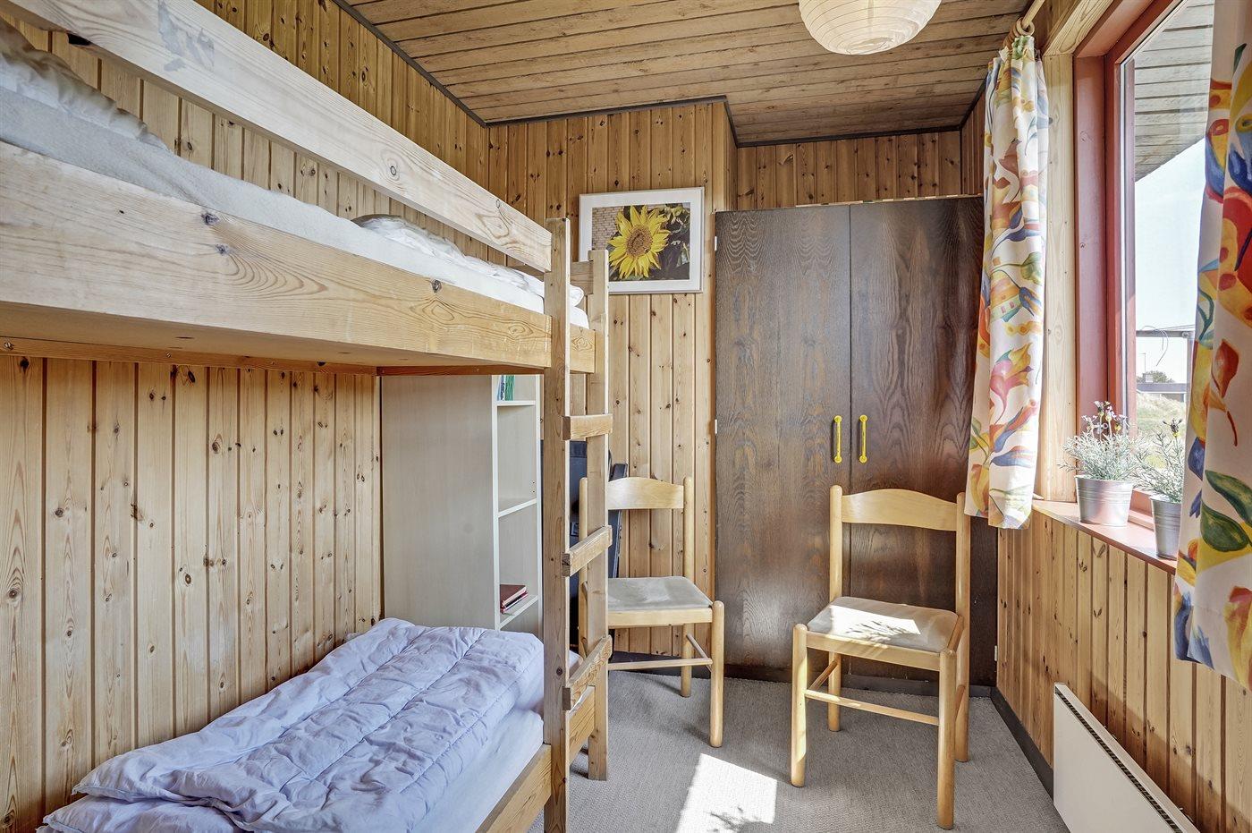 Der er i alt 4 soveværelser. Sovepladserne fordeler sig på: 4 sovepladser i dobbeltsenge. 4 sovepladser i køjesenge.