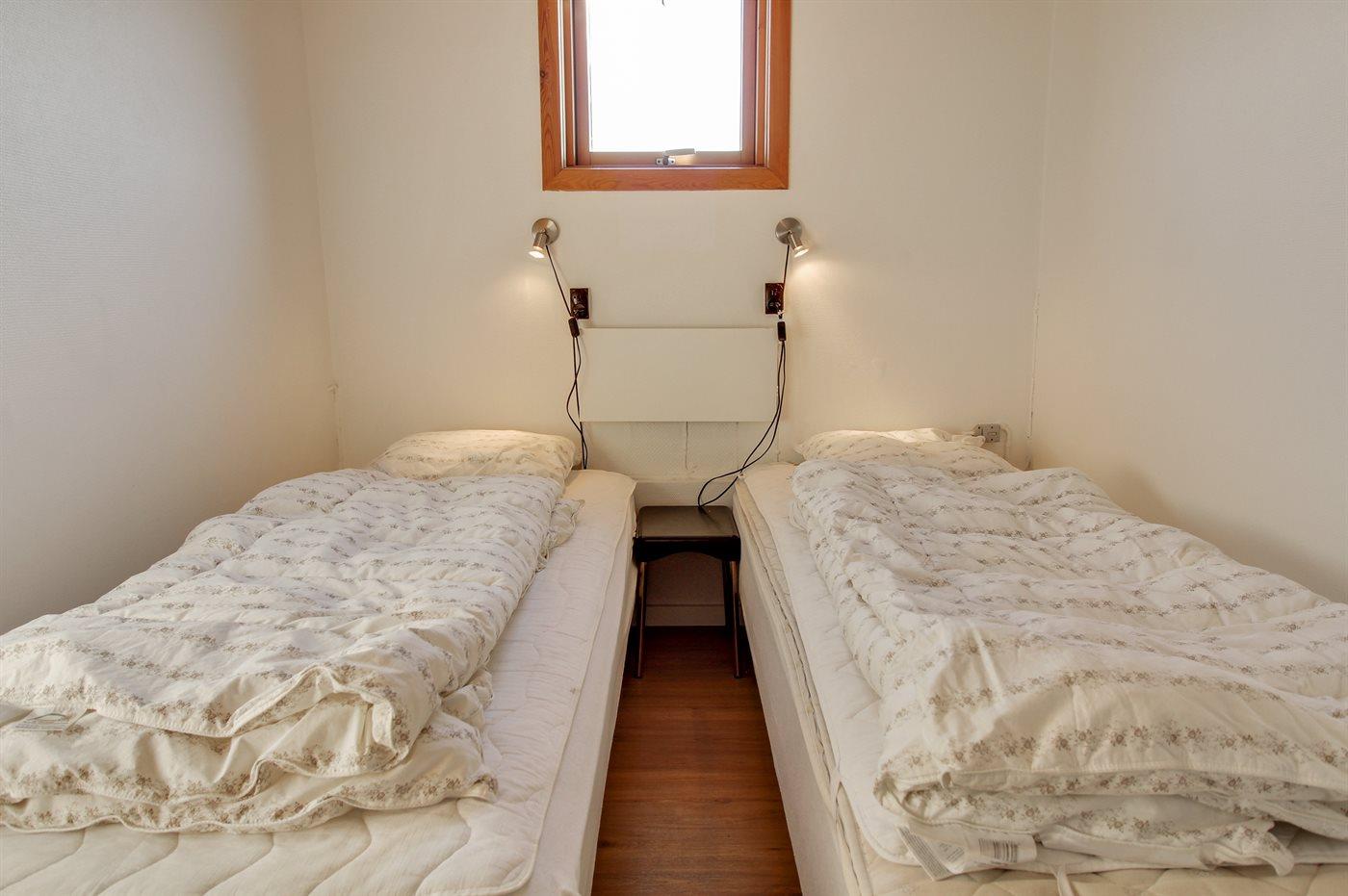 Der er i alt 2 soveværelser. Sovepladserne fordeler sig på: 2 sovepladser i dobbeltseng. 2 sovepladser i enkeltsenge.