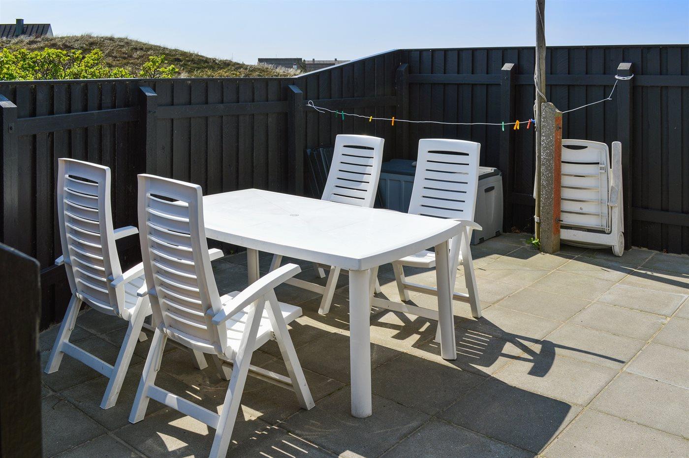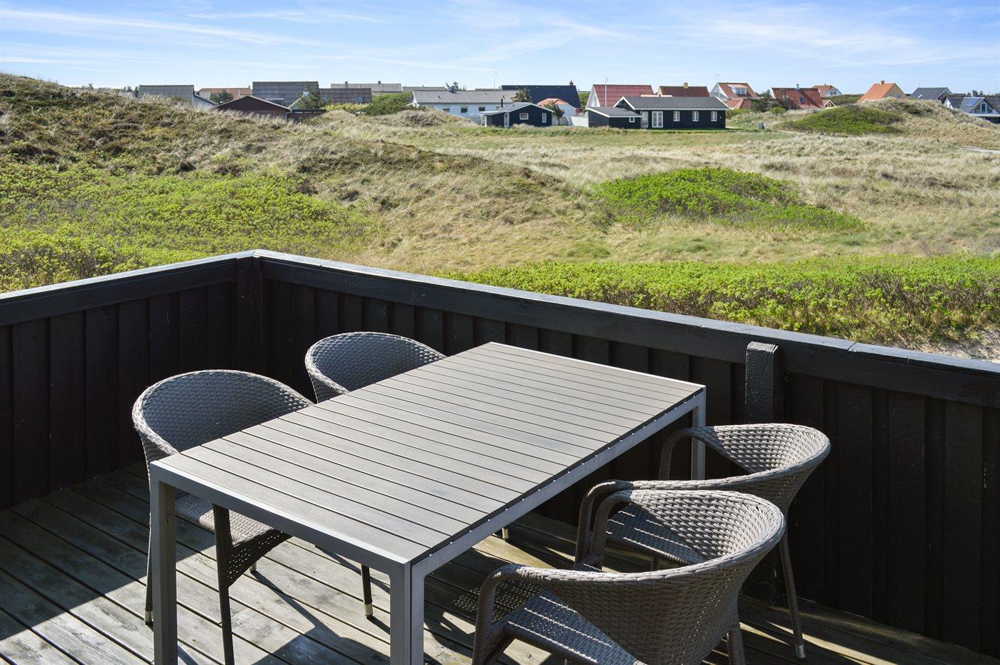 Ferieboligen er beliggende på en 1470 m² stor klitgrund. Der er 50 m til havet. Nærmeste forretning er beliggende i en afstand af 600 m. Til ferieboligen hører 70 m² terrasseareal. Heraf i alt 30 m² lukket terrasse. Parkering ved ferieboligen.