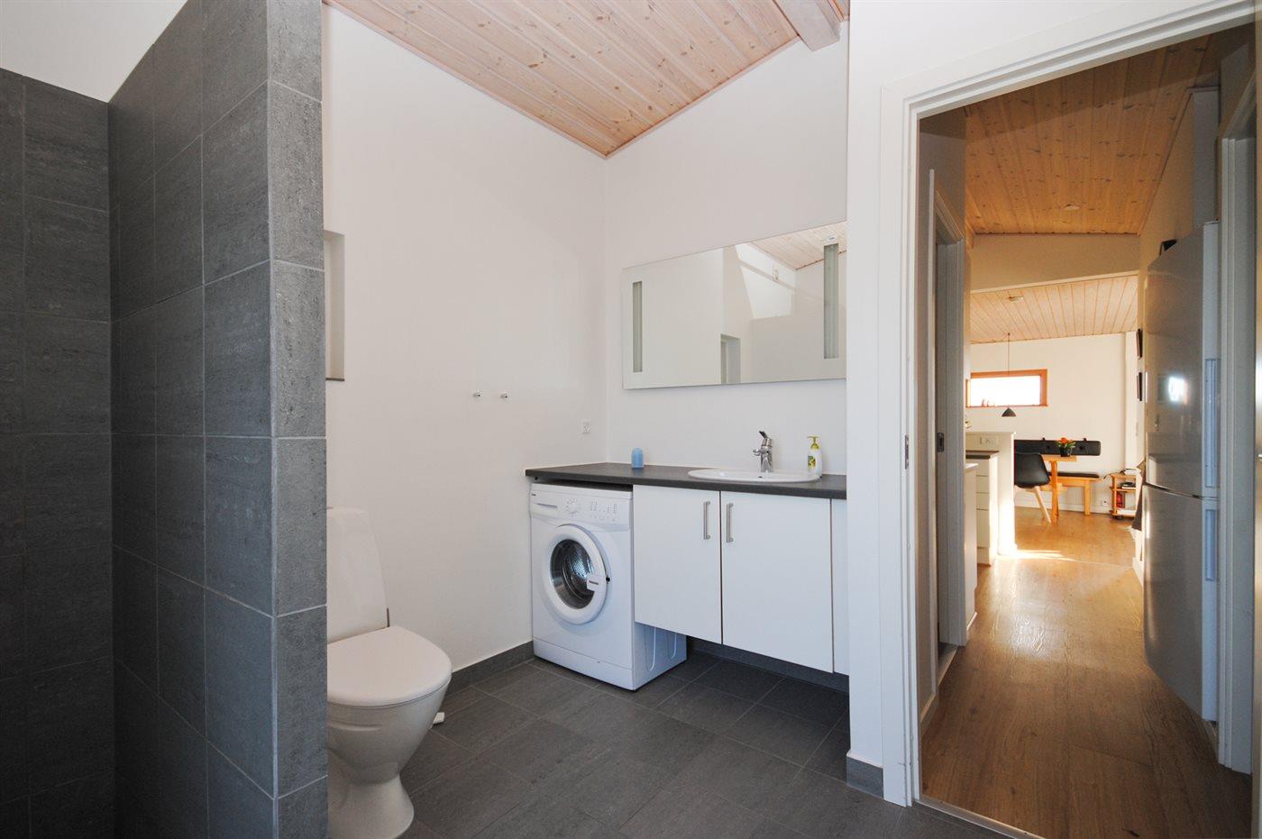 Der er 1 badeværelse med bruseniche og 1 toilet.. Der er gulvvarme på badeværelset.