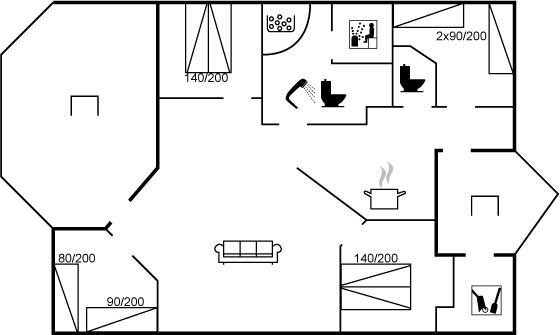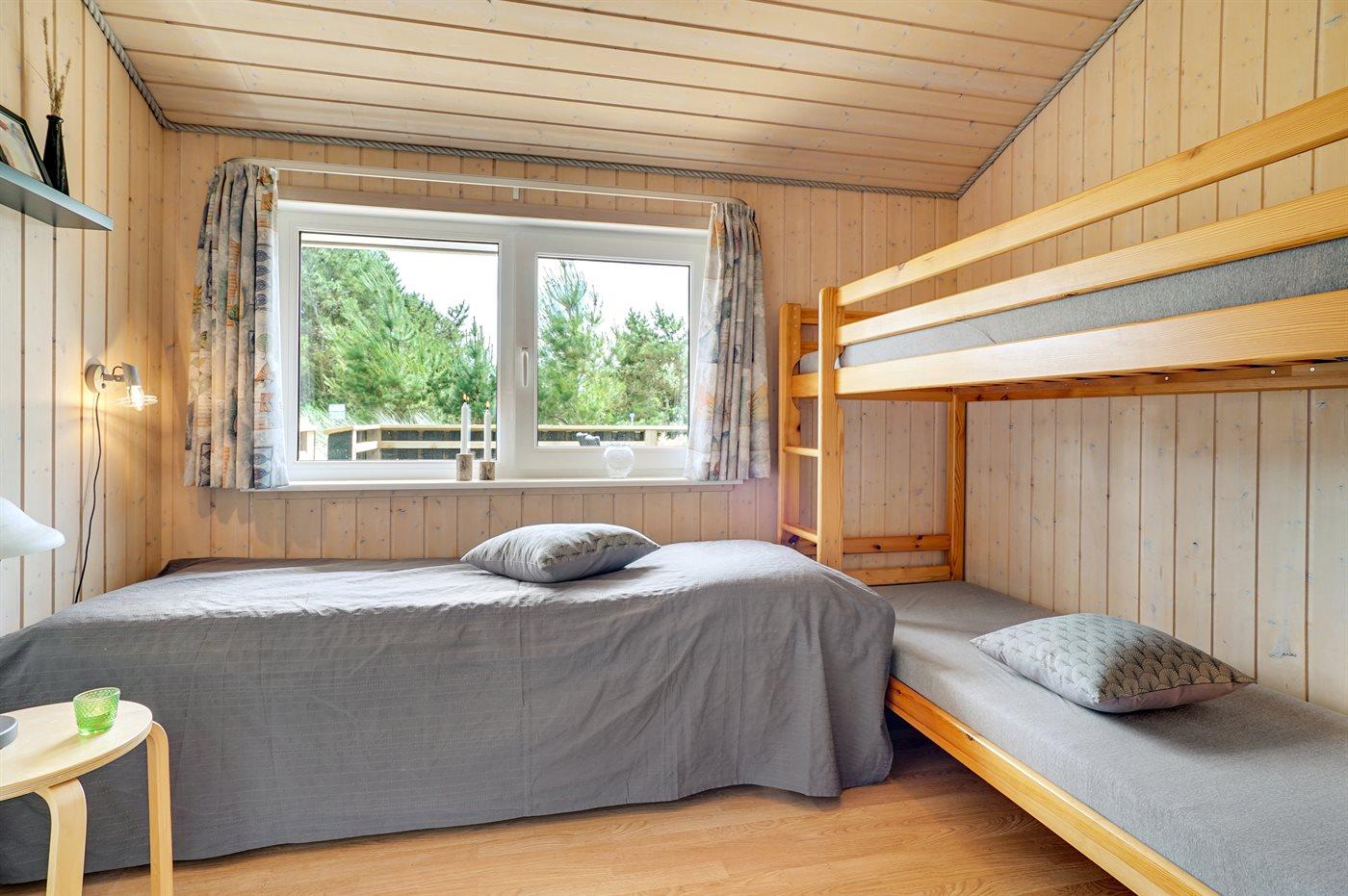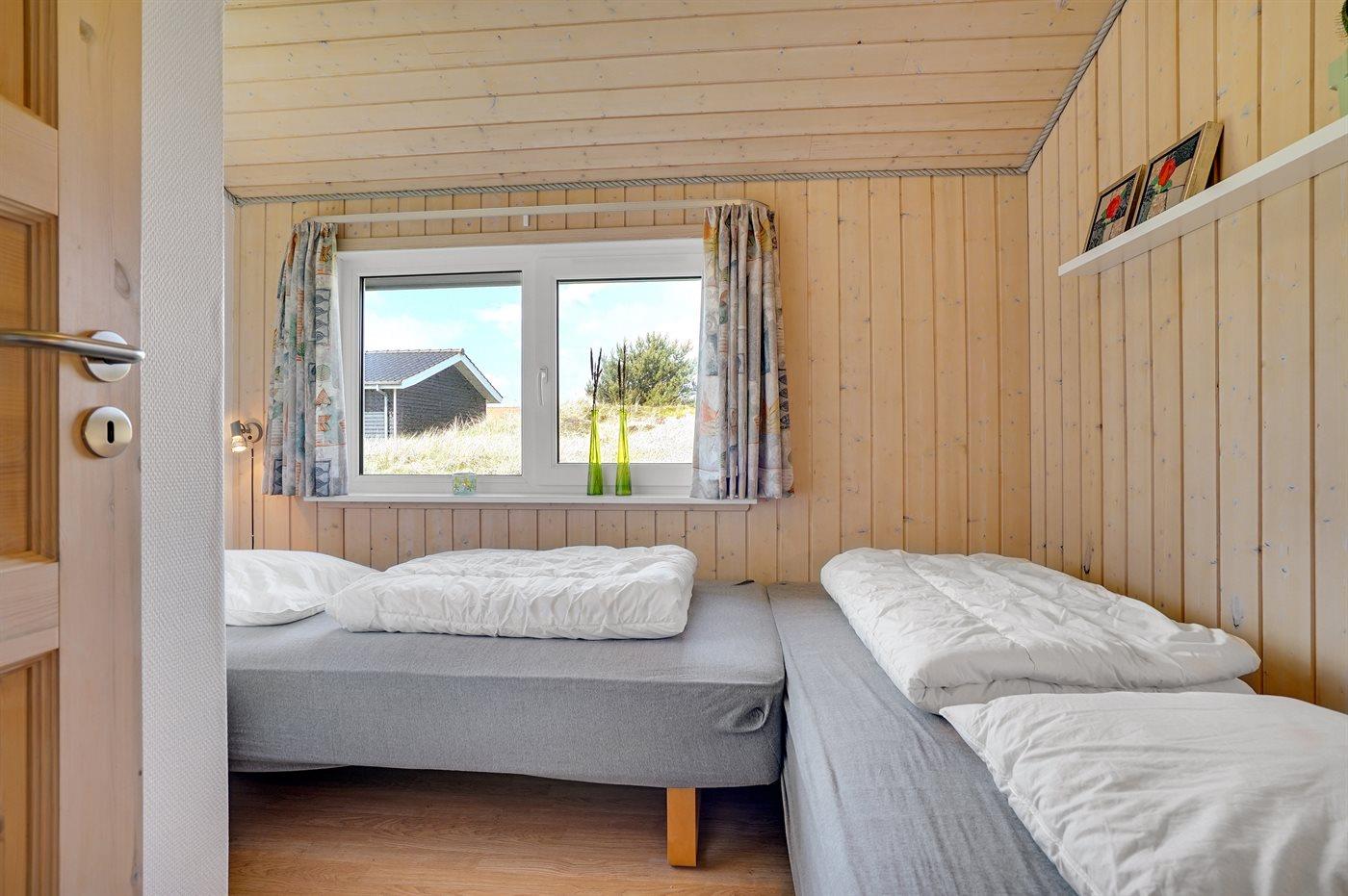 Der er i alt 4 soveværelser. Sovepladserne fordeler sig på: 4 sovepladser i dobbeltsenge. 3 sovepladser i enkeltsenge. 2 sovepladser i køjeseng.