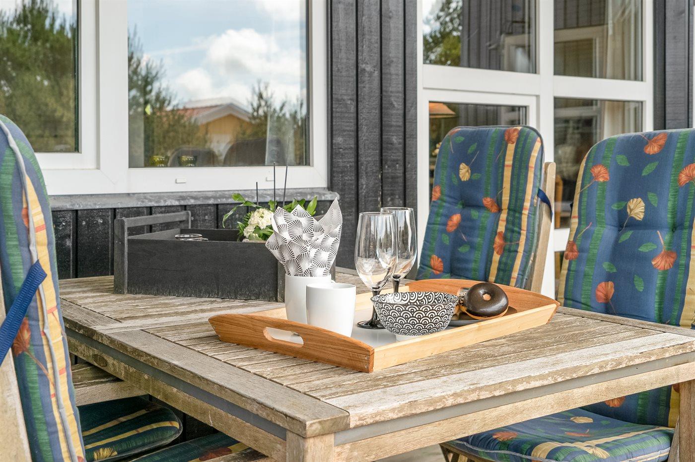 Ferieboligen er beliggende på en 983 m² stor naturgrund. Der er 900 m til havet. Nærmeste forretning er beliggende i en afstand af 900 m. Til ferieboligen hører 42 m² terrasseareal. Desuden er der 24 m² overdækket terrasse. Der er redskabsrum. Grill til rådighed. Parkering ved ferieboligen.