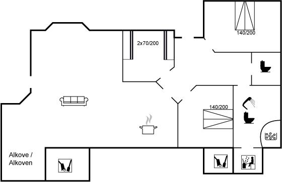 Der er i alt 3 soveværelser. Sovepladserne fordeler sig på: 4 sovepladser i dobbeltsenge. 4 sovepladser i køjesenge.
